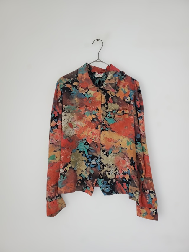 EURO VINTAGE FLOWER PATTERN OPEN COLLAR SHIRT.