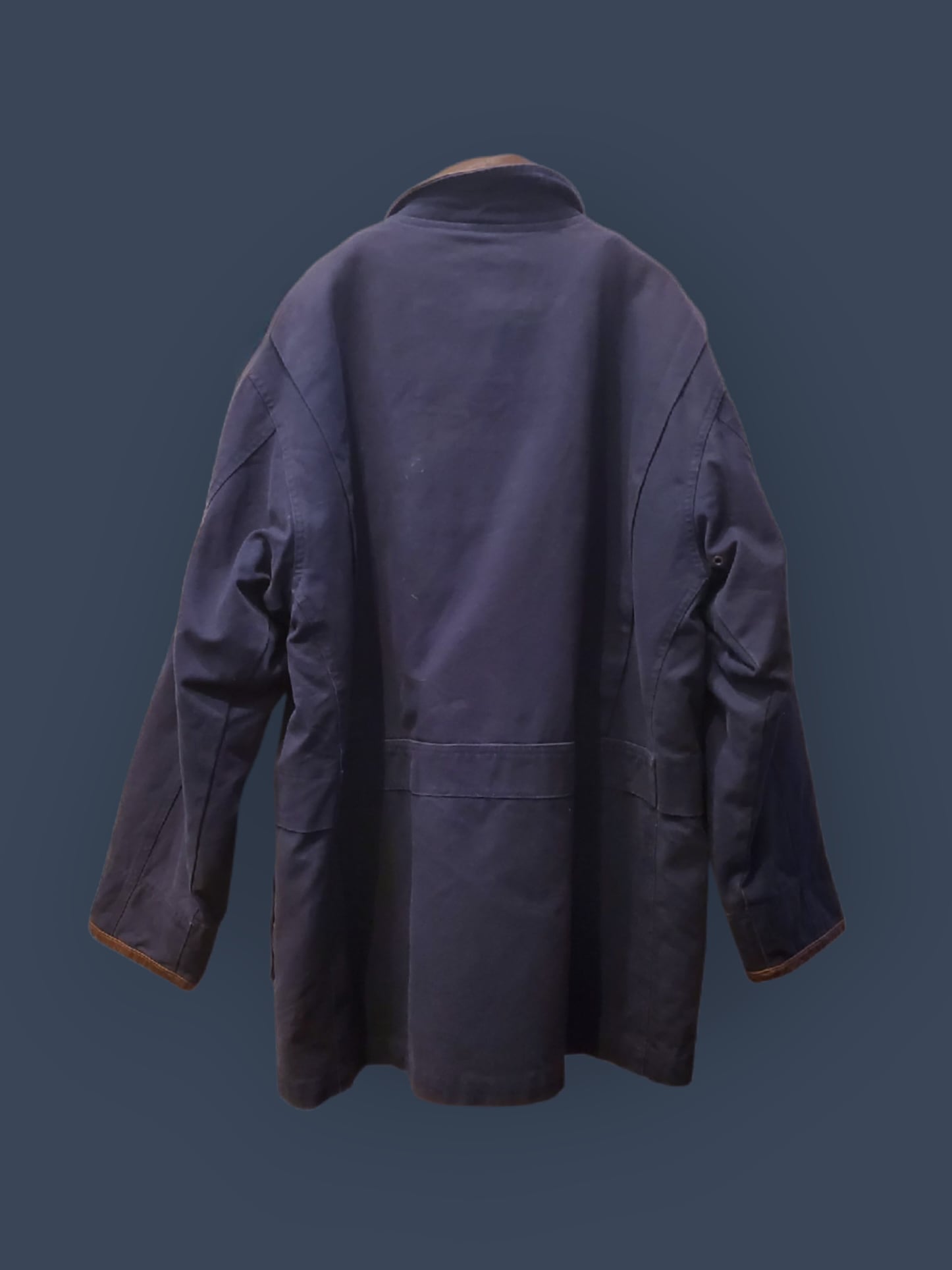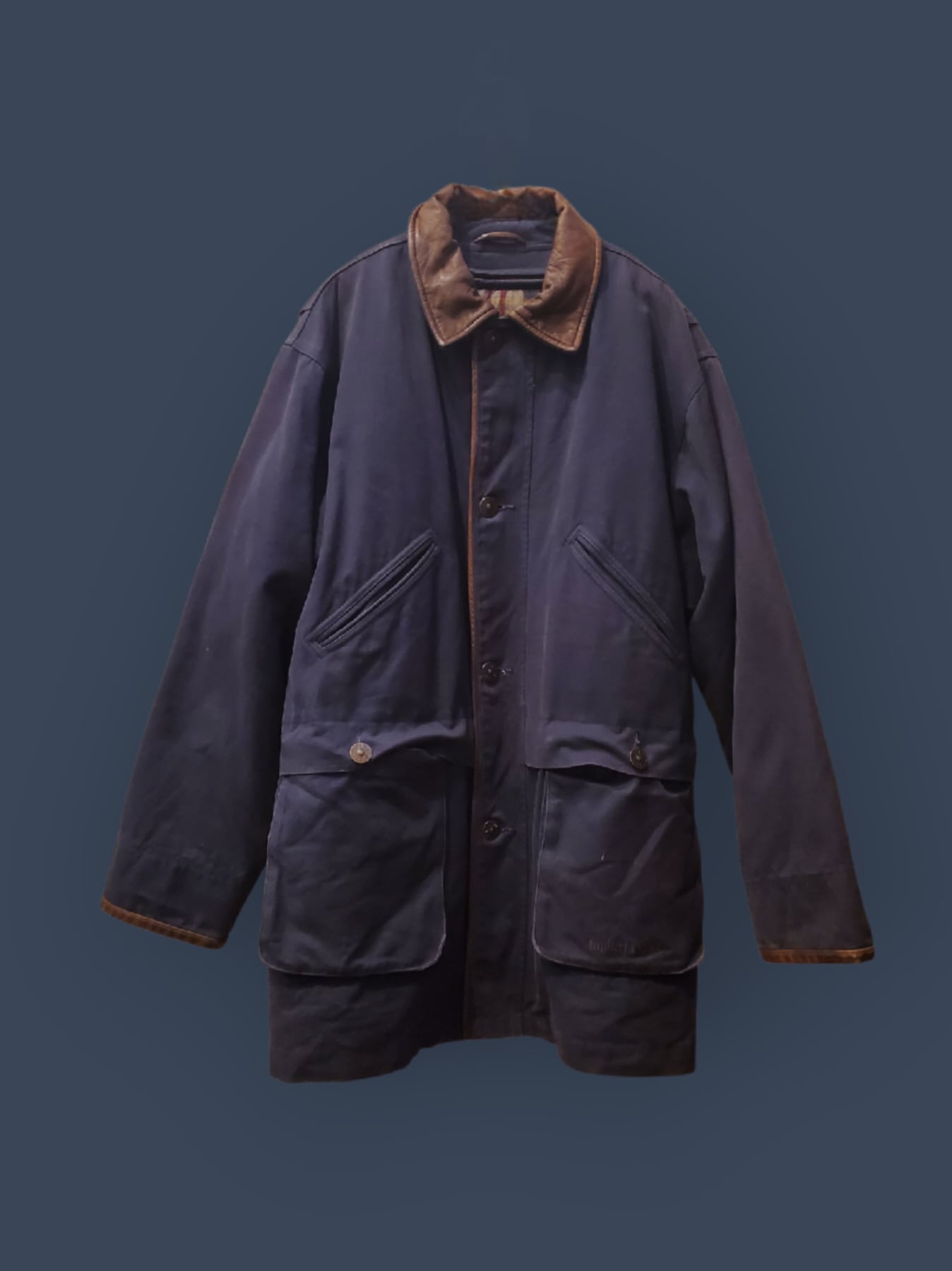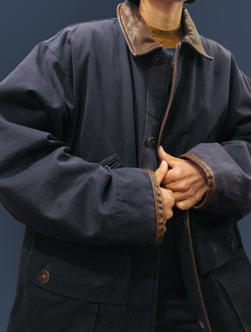 襟のレザー切り替えが渋さを引き立てる一着。着脱可能なキルティングライナー付きで、季節を跨いで活躍します。サイズXSなので女性でも取り入れやすいシルエットです。