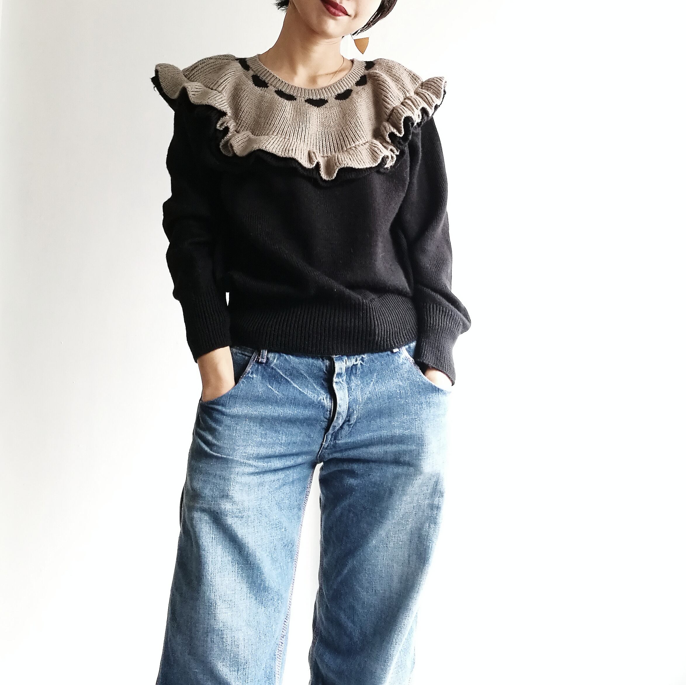 Japanese used vintage ruffle sweater