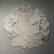 ウンガロのレースブラウスです。シルク地に繊細なレースがたっぷり。とても綺麗な状態で入荷しました。腕を動かすとヒラヒラする袖の広がったレースに心ときめきます。