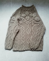 ポンポンがたくさんついたローゲージニット。ニットワンピになるくらいの長さがあります。ざっくりニットは冬の定番アイテム。アランニットだけでなくデザインの利いたニットも持っていたいです。
