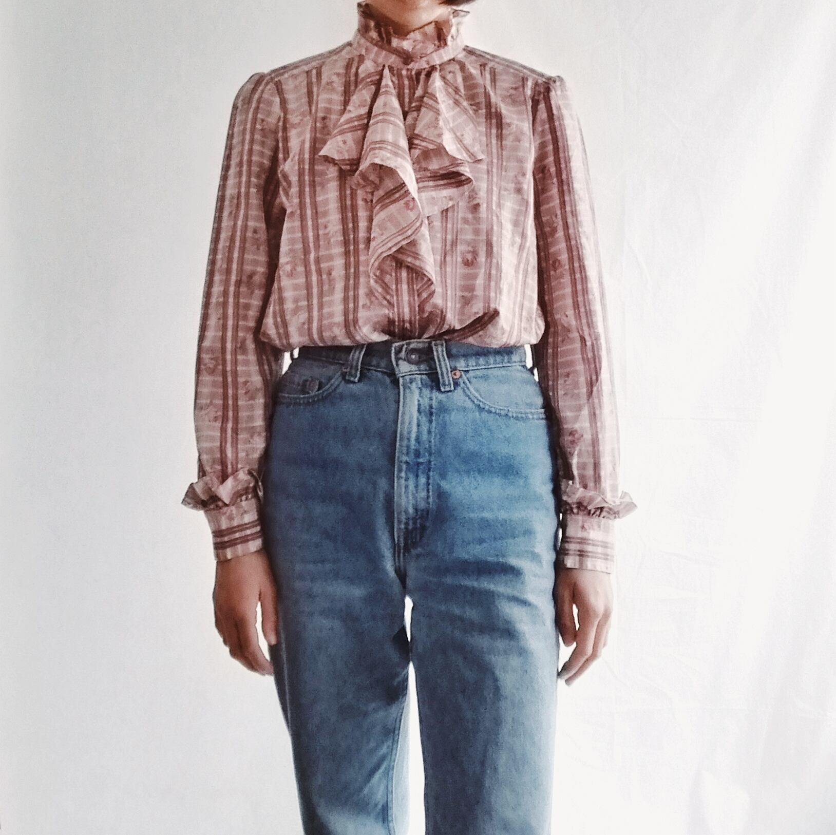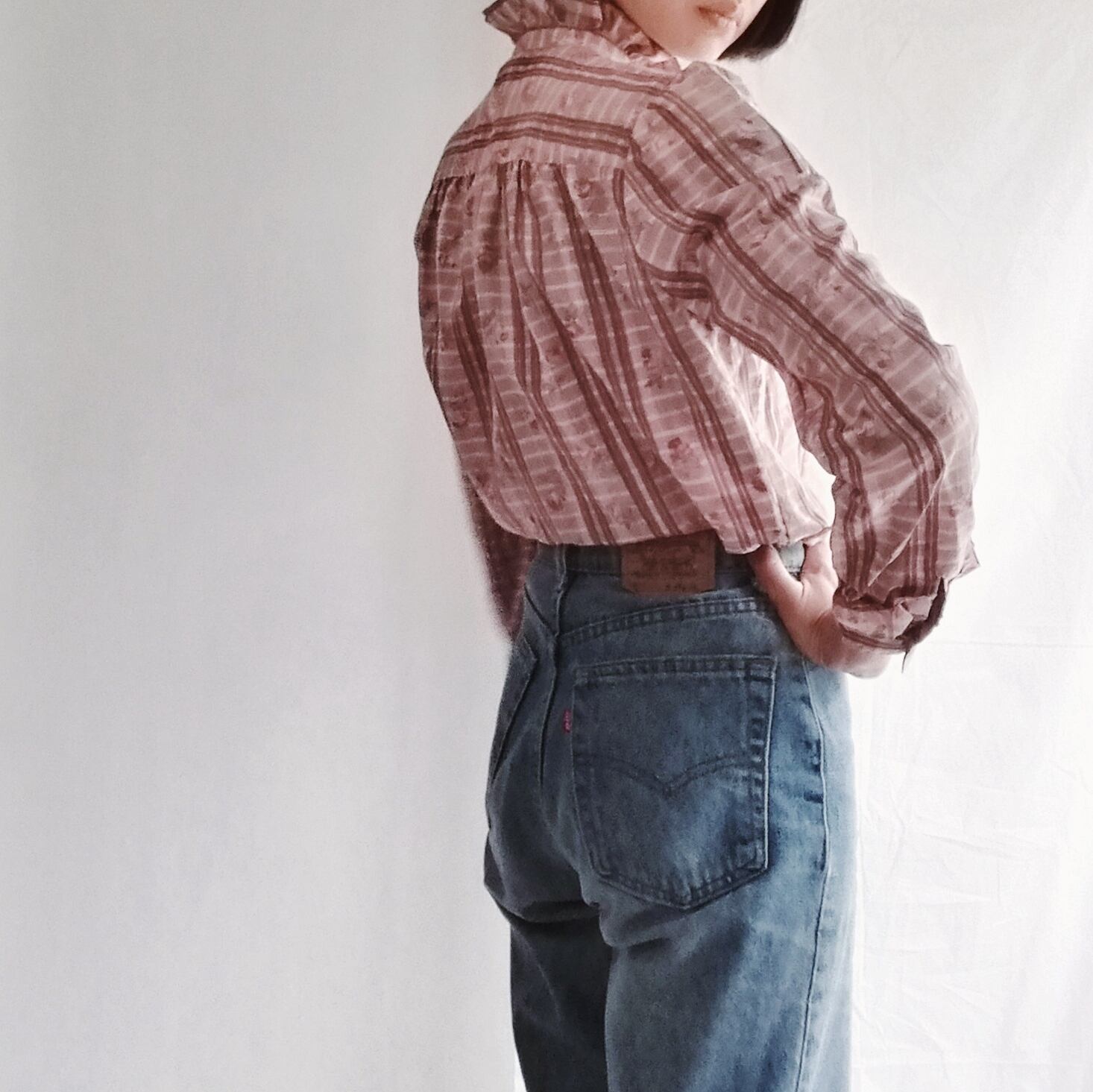一見乙女なアイテムですがデニムと合わせるとカジュアルになります。フレアパンツ等で70sファッションをを楽しみたい。
