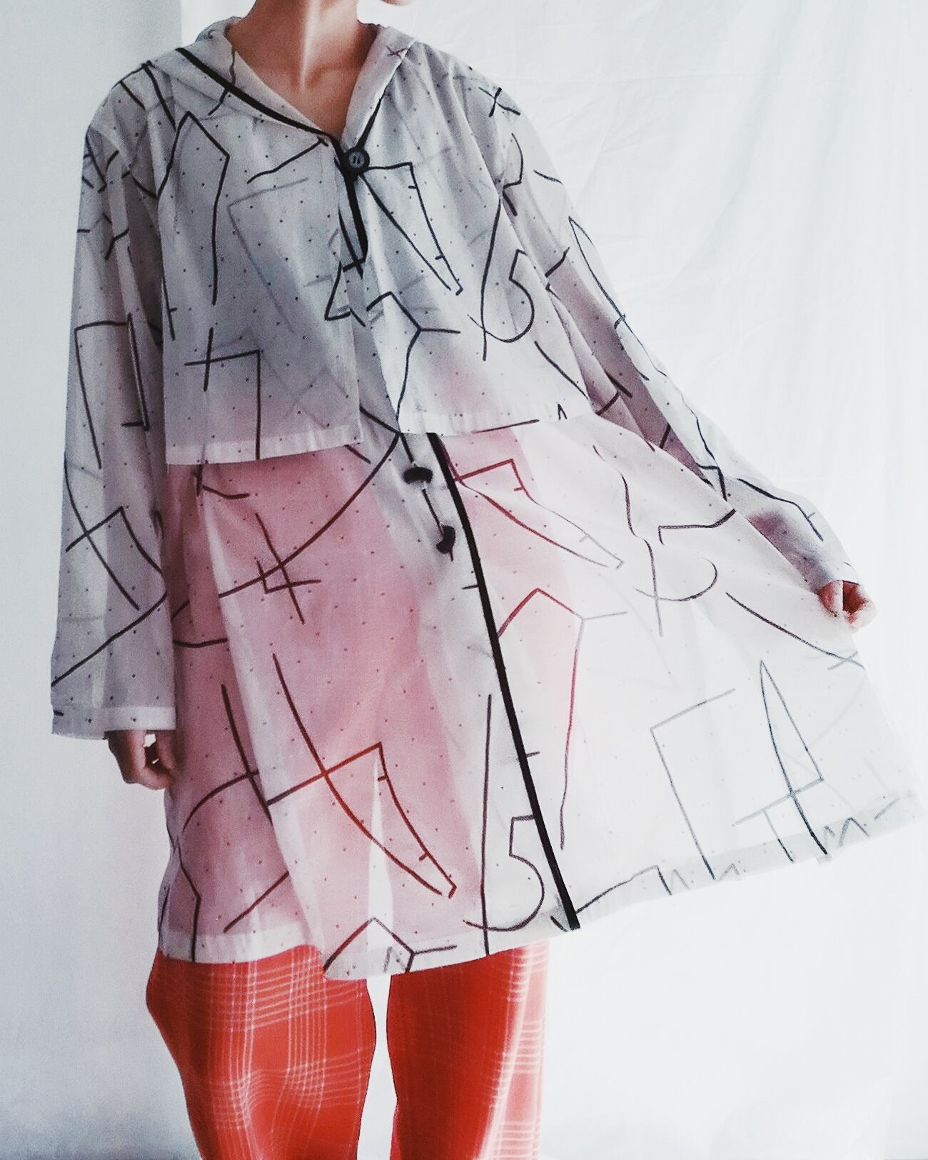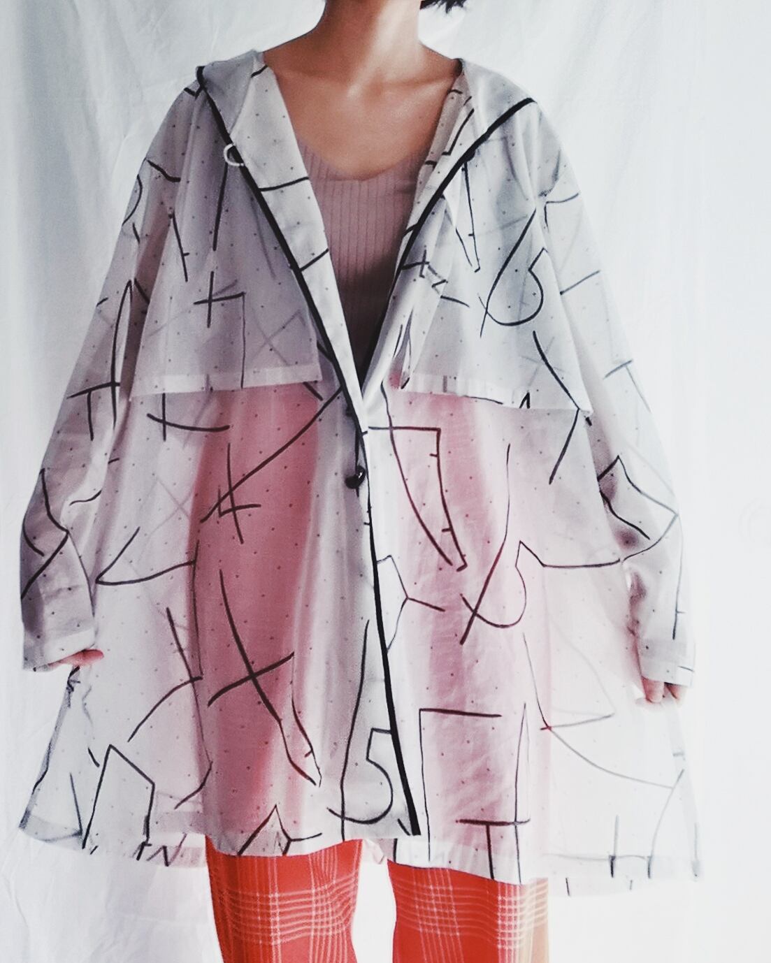 透け感を楽しめるシアーコート。フード付き。