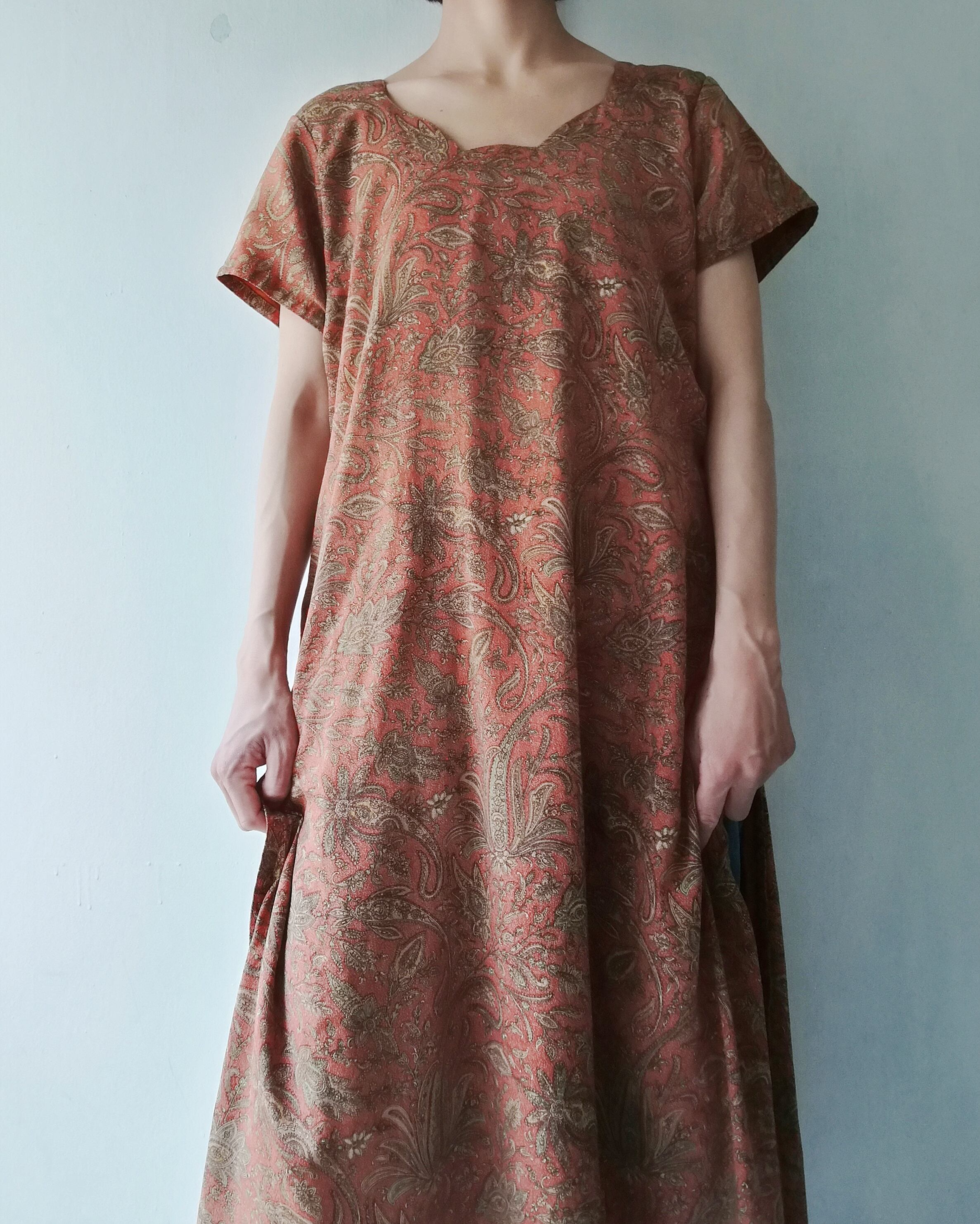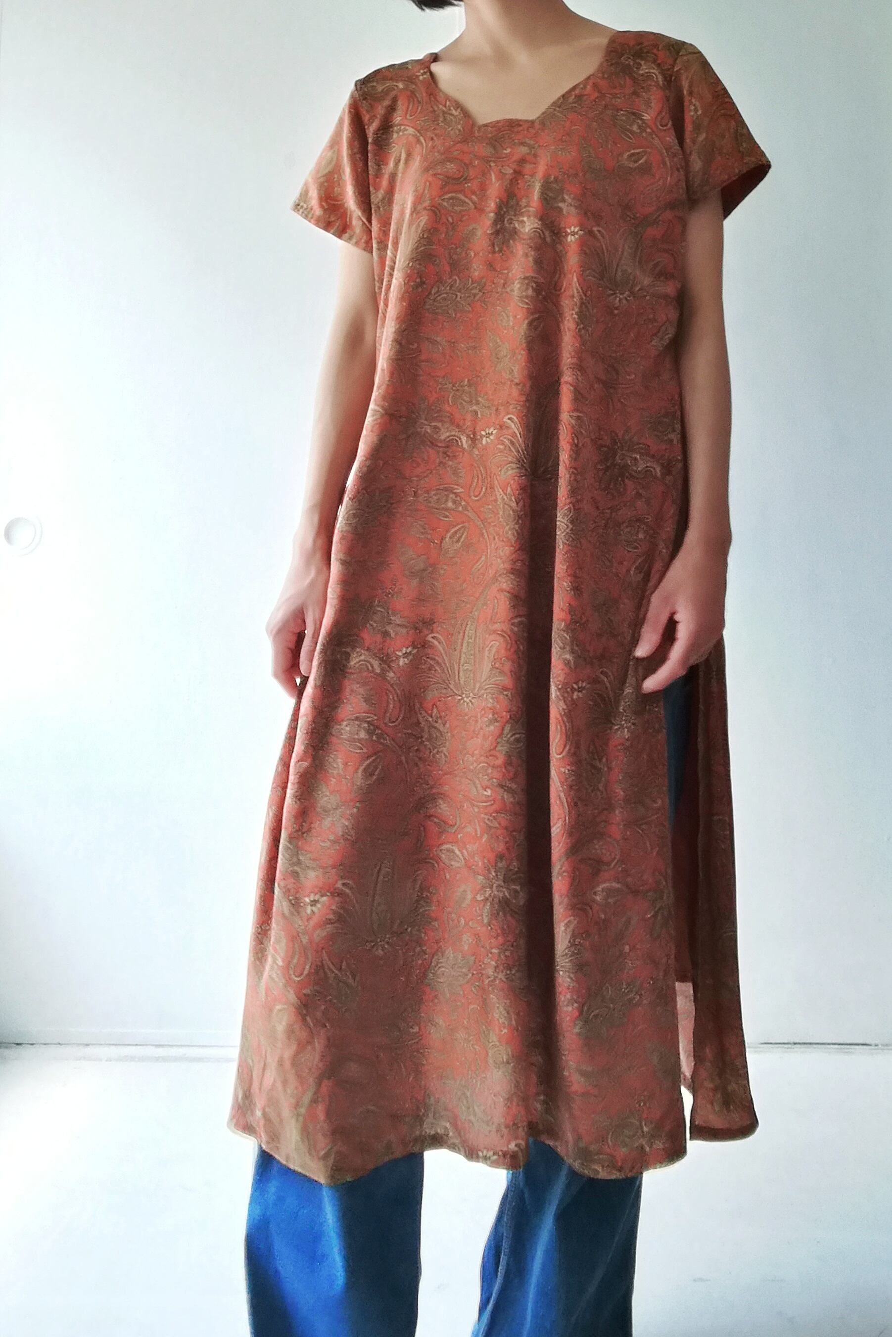EUROPE VINTAGE / PAISLEY PATTERN SIDE SLIT DRESS.