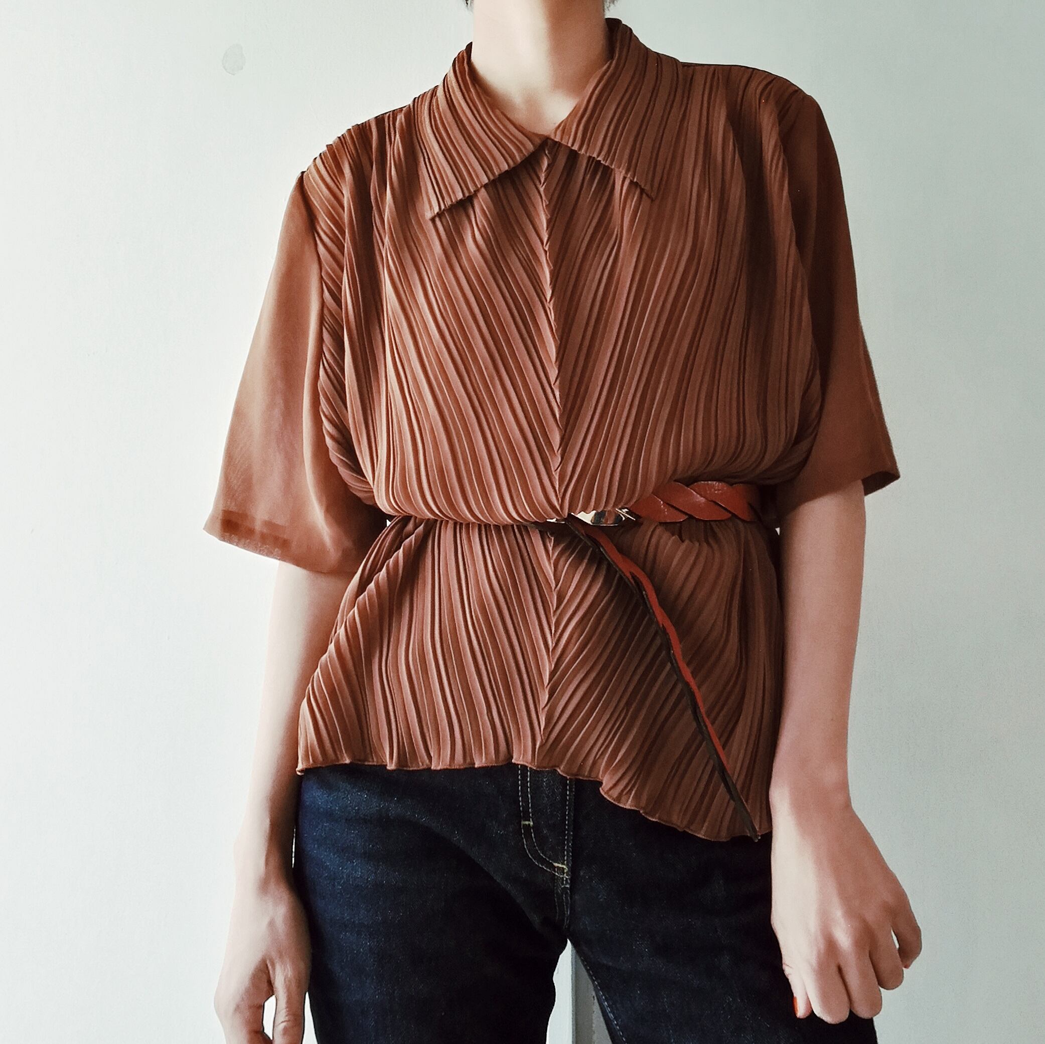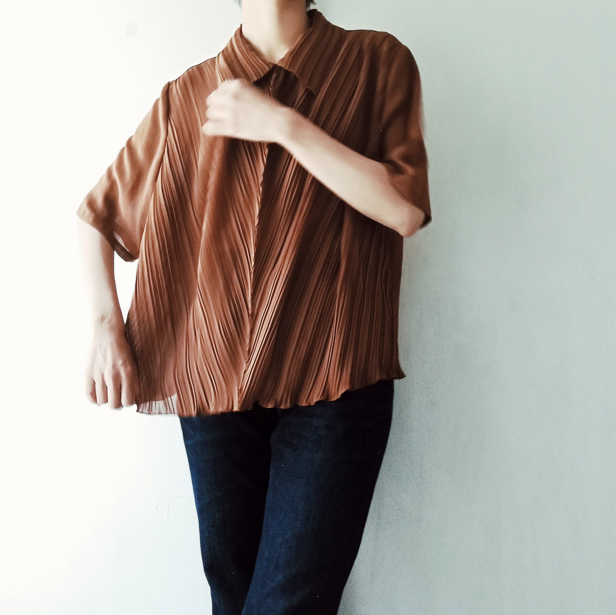 襟までプリーツになっていてとってもかわいいです。ウエストマークしてペプラムを楽しむのも◎5分袖なのも嬉しいです。着た印象は、Sサイズにはオーバー気味ですがそのオーバーな感じも好みです。