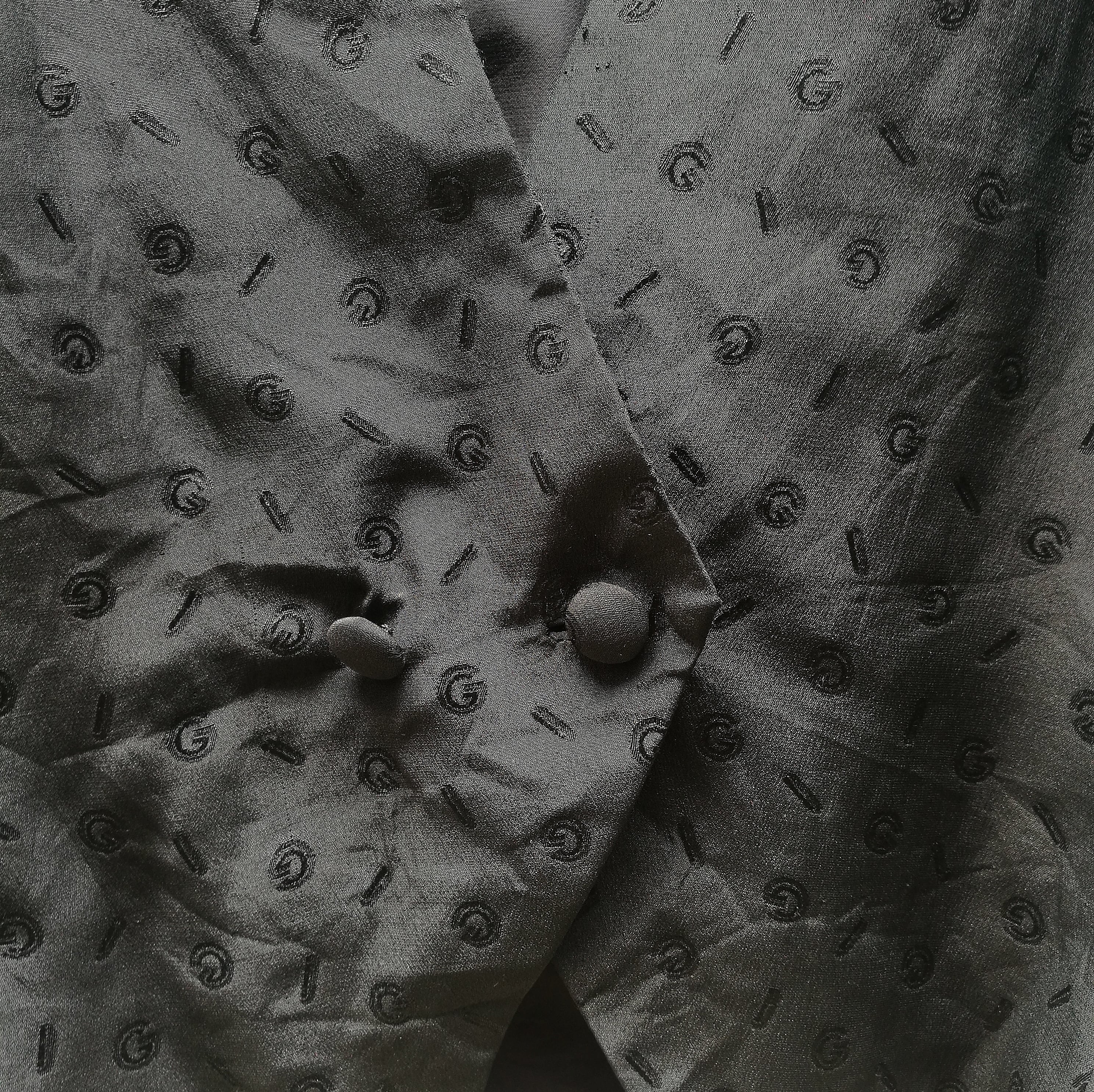 横幅と身丈が同じくらいの正方形。黒い生地には隠れ柄があるのもポイント。