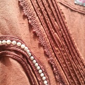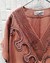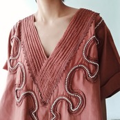 ピンクベージュ?赤茶色?のごわっとした生地。