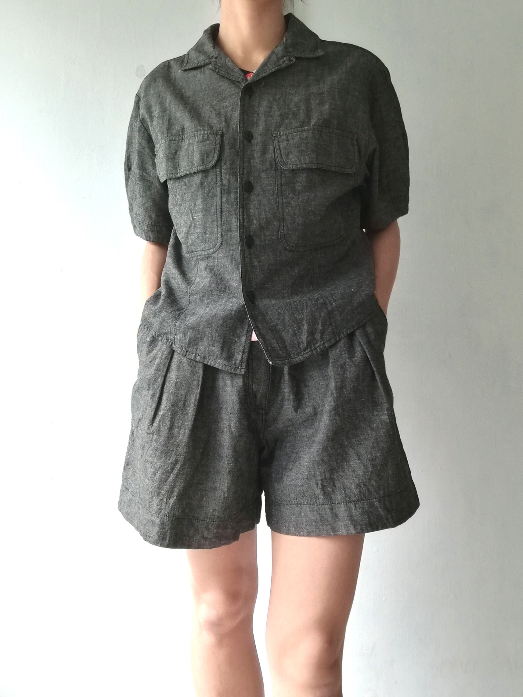 ショートパンツのセットアップはまさに今の気分。少年っぽくなりがちなショーツを大人っぽくモードにスタイリングするのが楽しい。