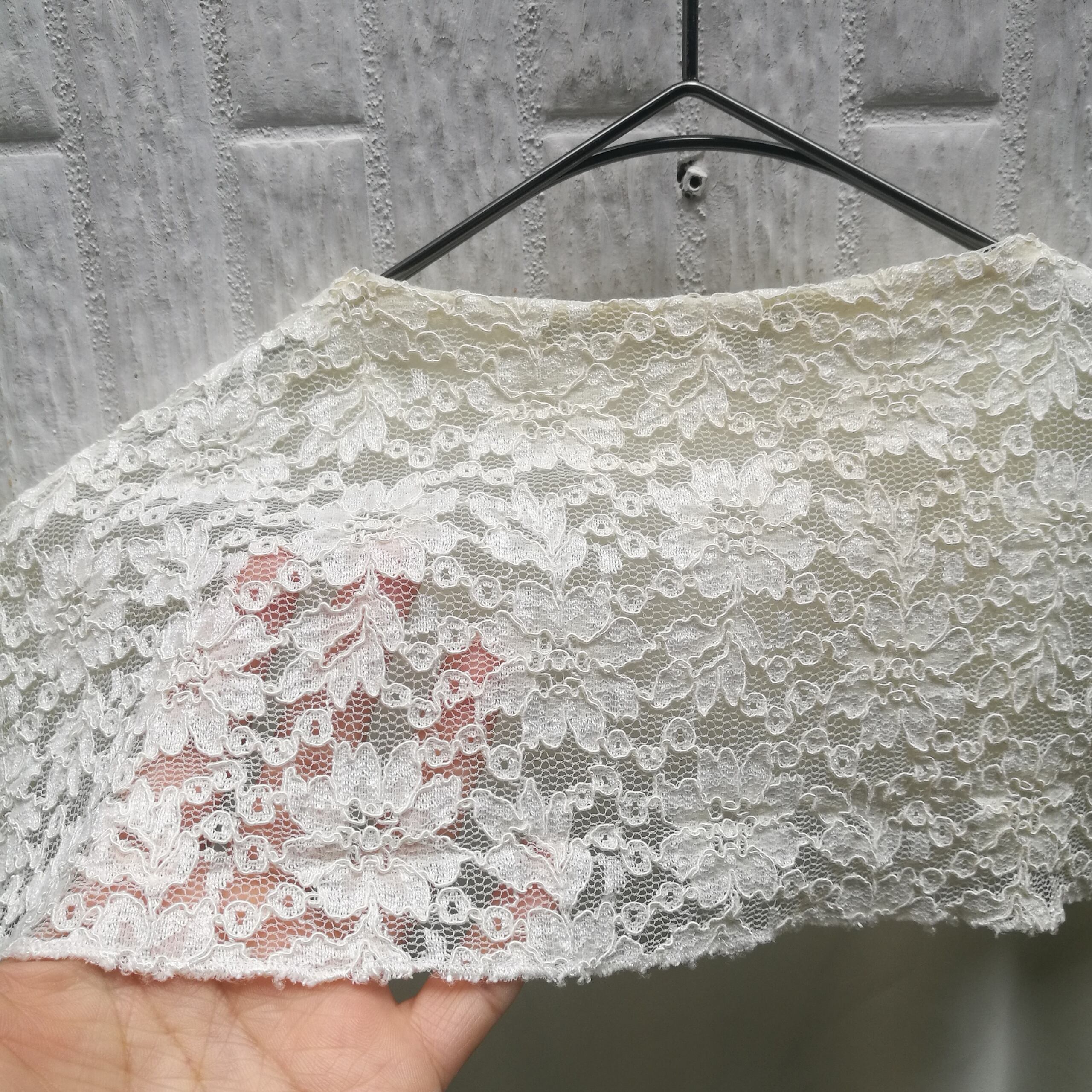 セーラーのように肩から後ろにかけて続いて、肩にかかるレースがとってもかわいいです。