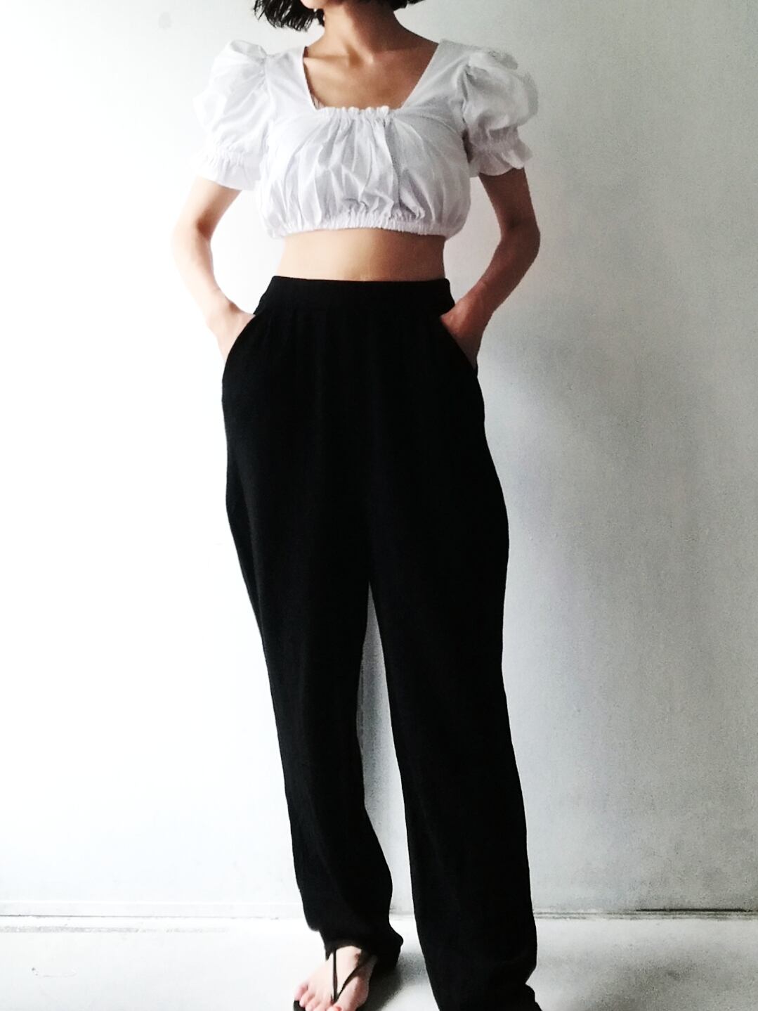 MADE IN USA BLACK SUMMER KNIT PANTS.