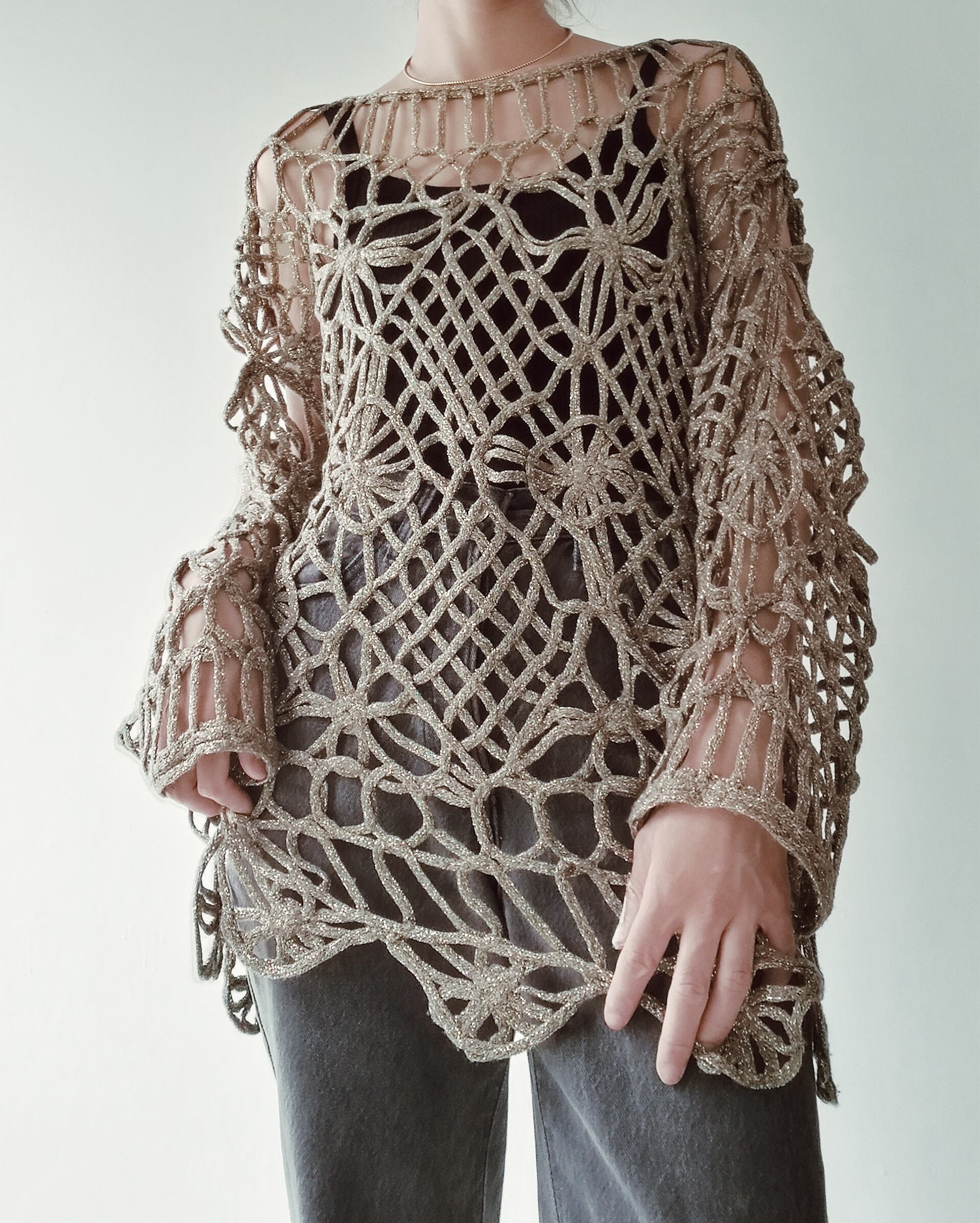 粗いレースは重ね着に使えます。アクリルなので夏でも◎オールシーズン楽しめるアイテムです。