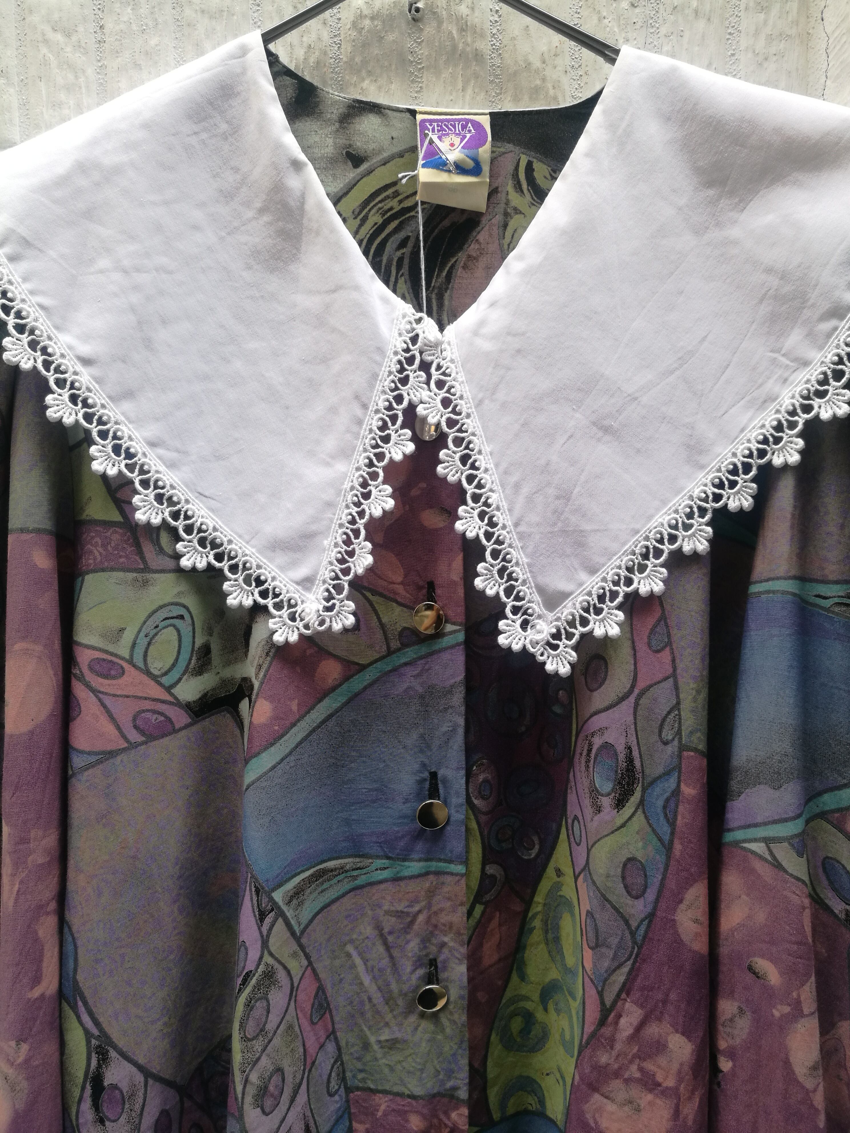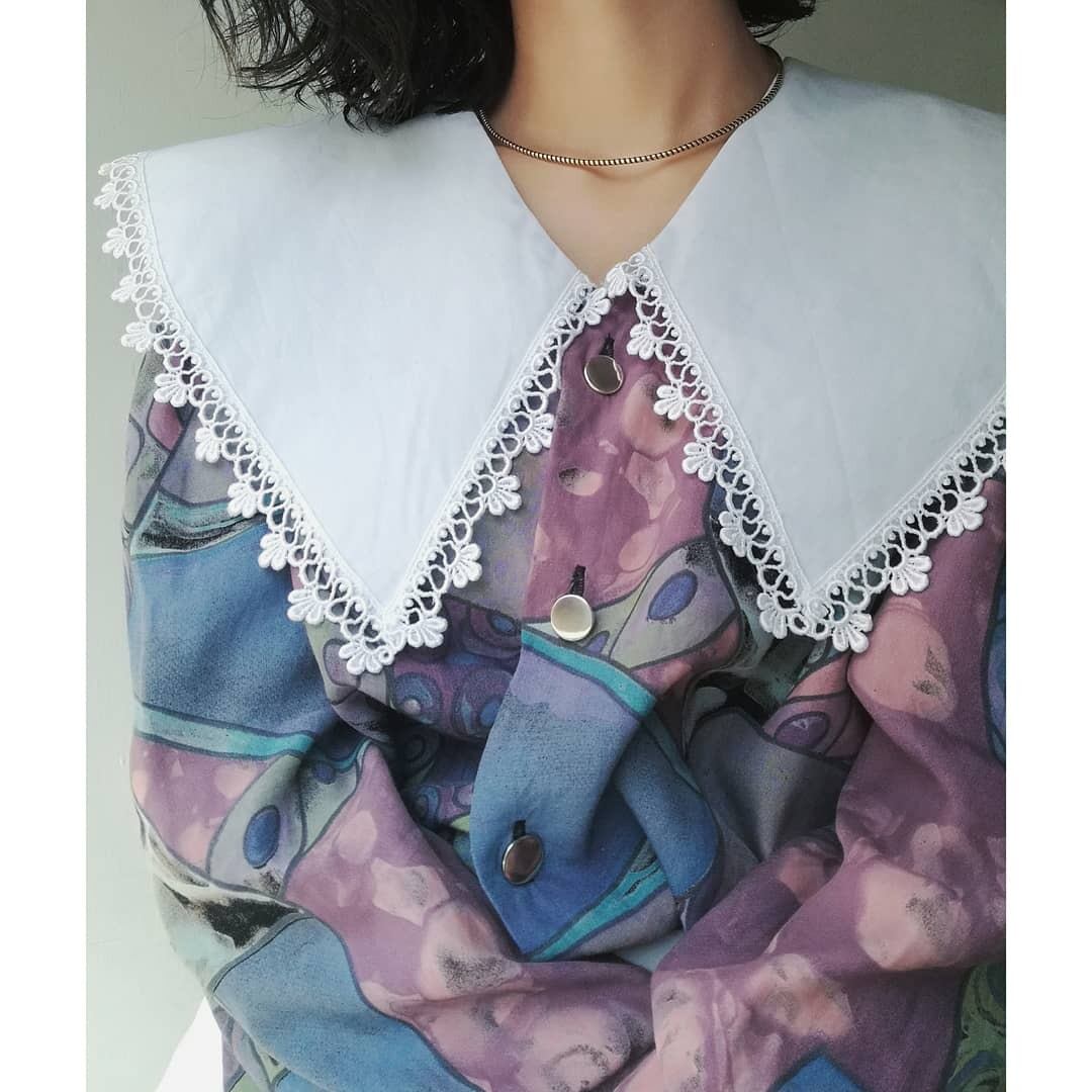 レース付き大きな襟のインパクト強めな80sドイツヴィンテージブラウス。