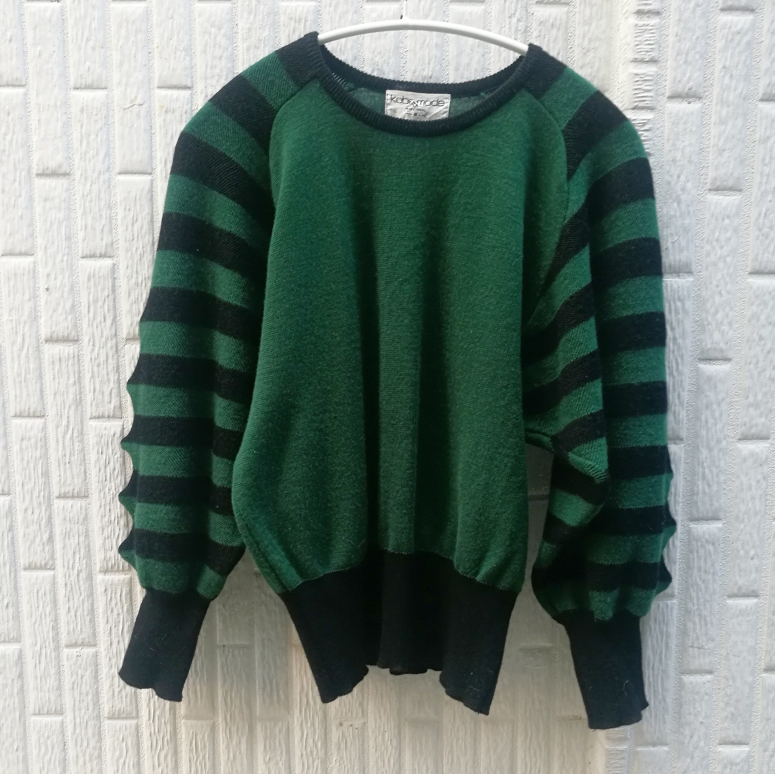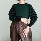 袖に凹凸のあるまるでステゴサウルスのようなニットセーター。