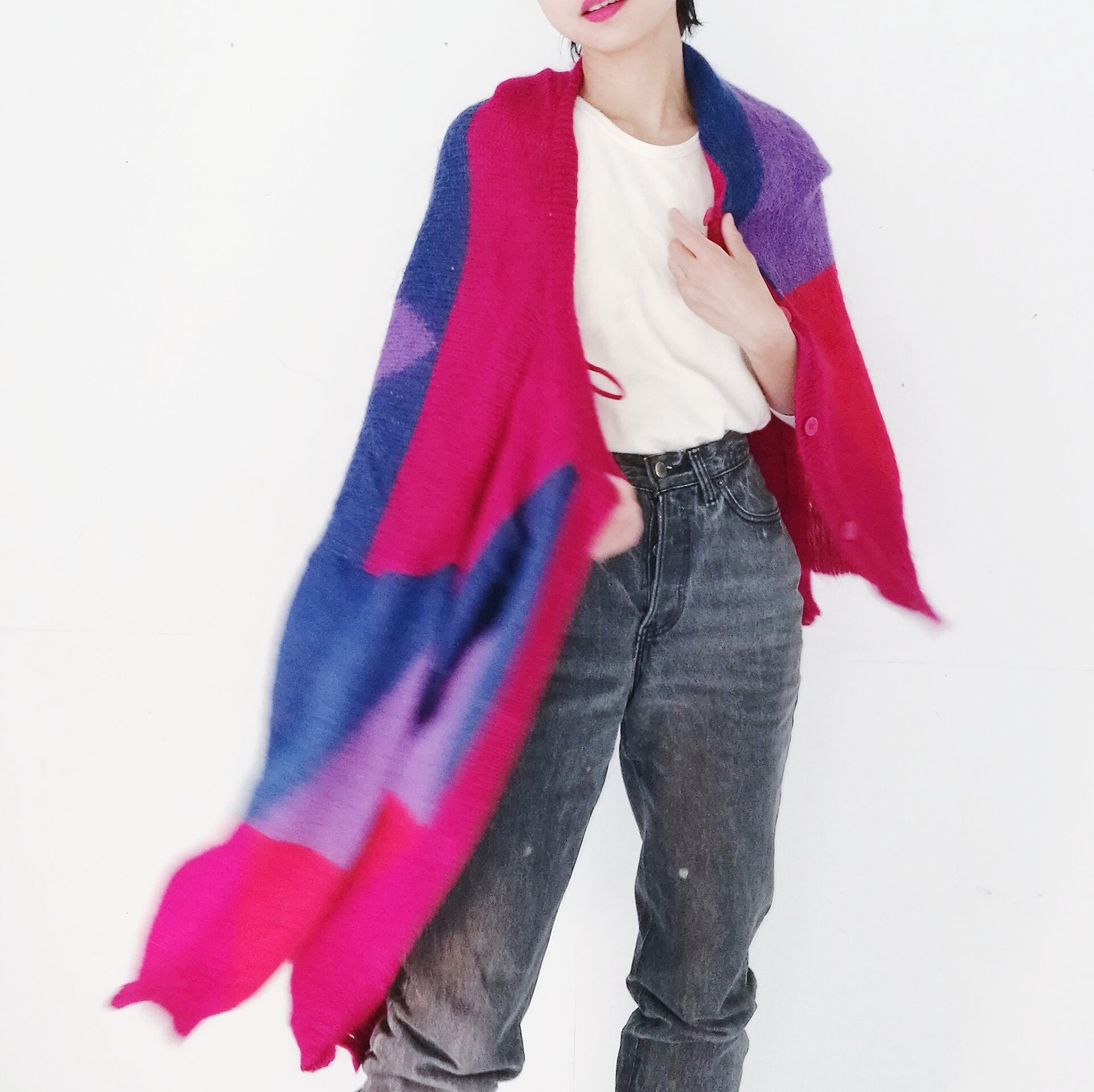 モヘア×アクリル混合でライトなカーディガンですが、見た目よりもモヘアがじんわり温めてくれるのでロングシーズン楽しめるアイテムです。首に巻いたりコーディネートの差しアイテムに◎スキニーやレザーパンツとも好相性、ライダースの上に羽織ってもかわいい♡