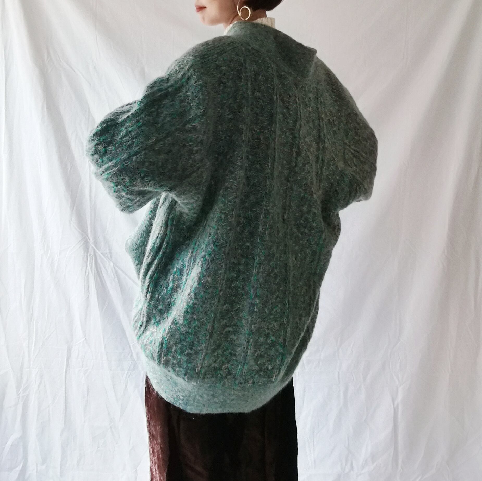 腕にたっぷりとボリュームがありフォルムがかわいいです。フロントのボタンがないガウンタイプなのでそのまま緩く羽織ったりウエストマークしても◎車移動の多い方やおうち作業の軽い羽織として使えそうです。