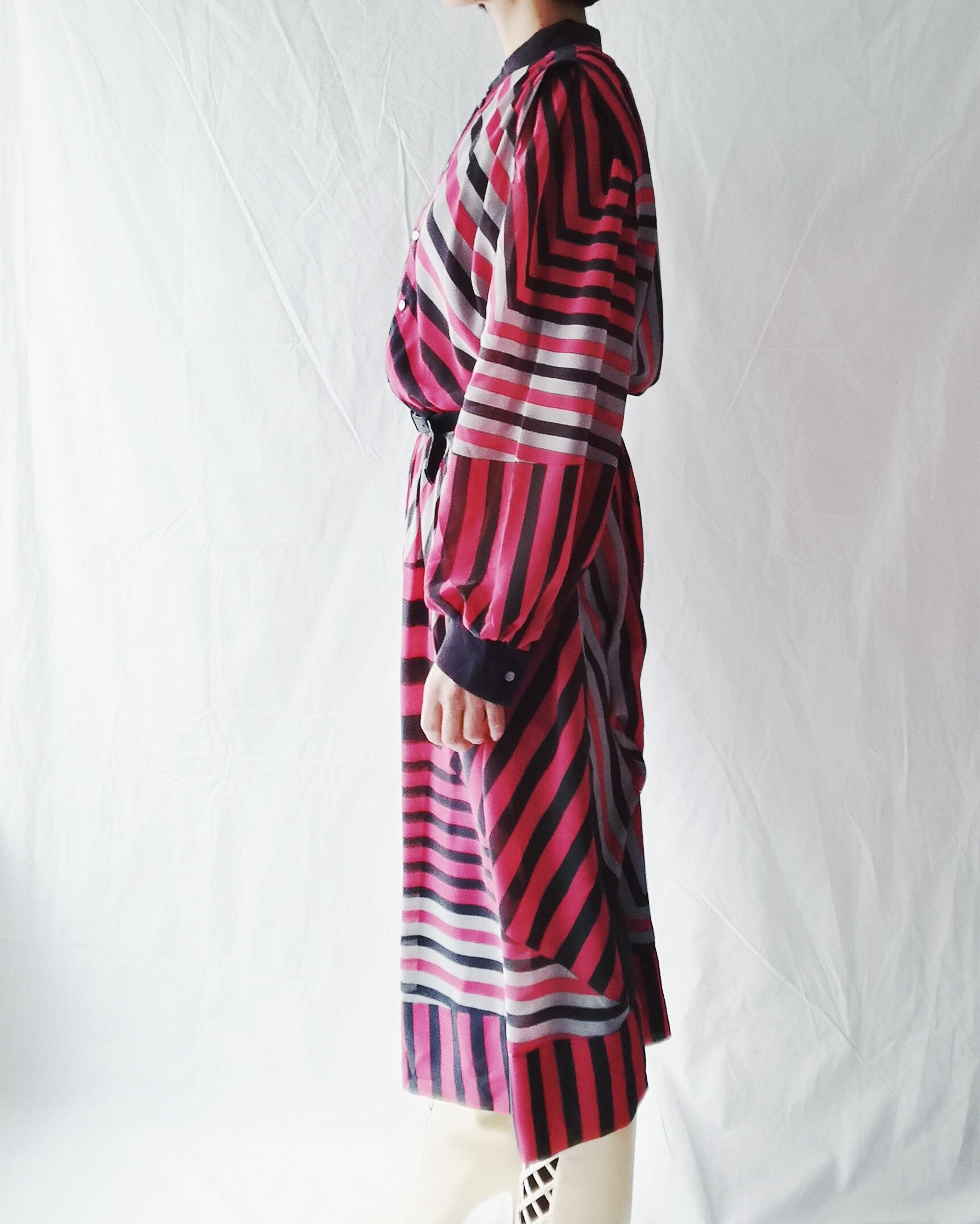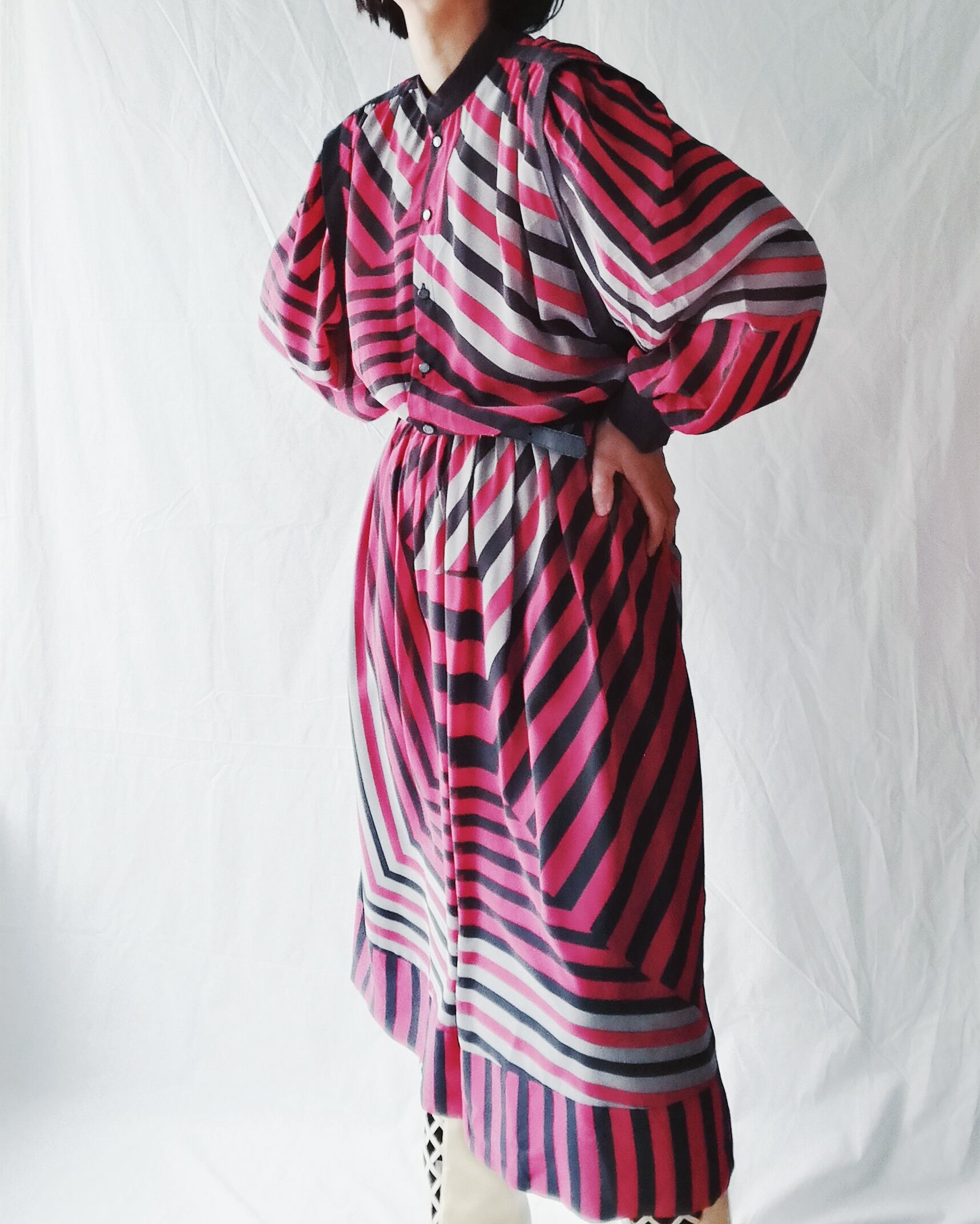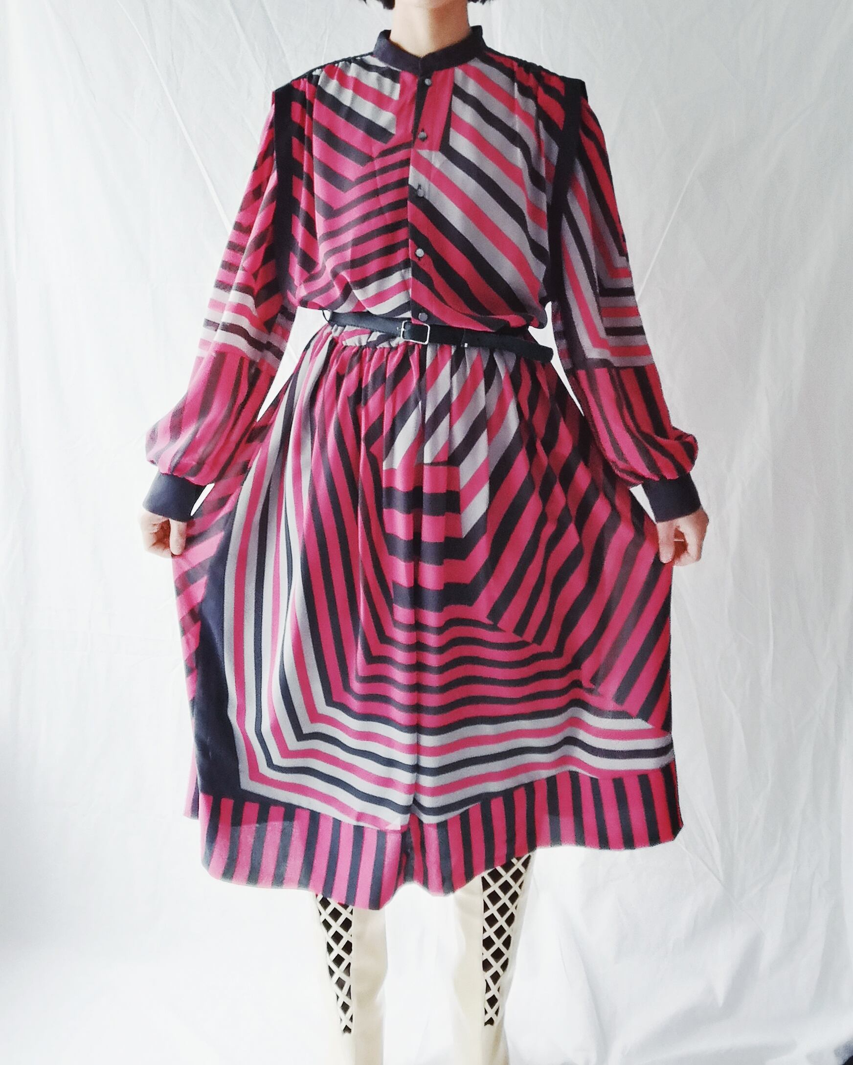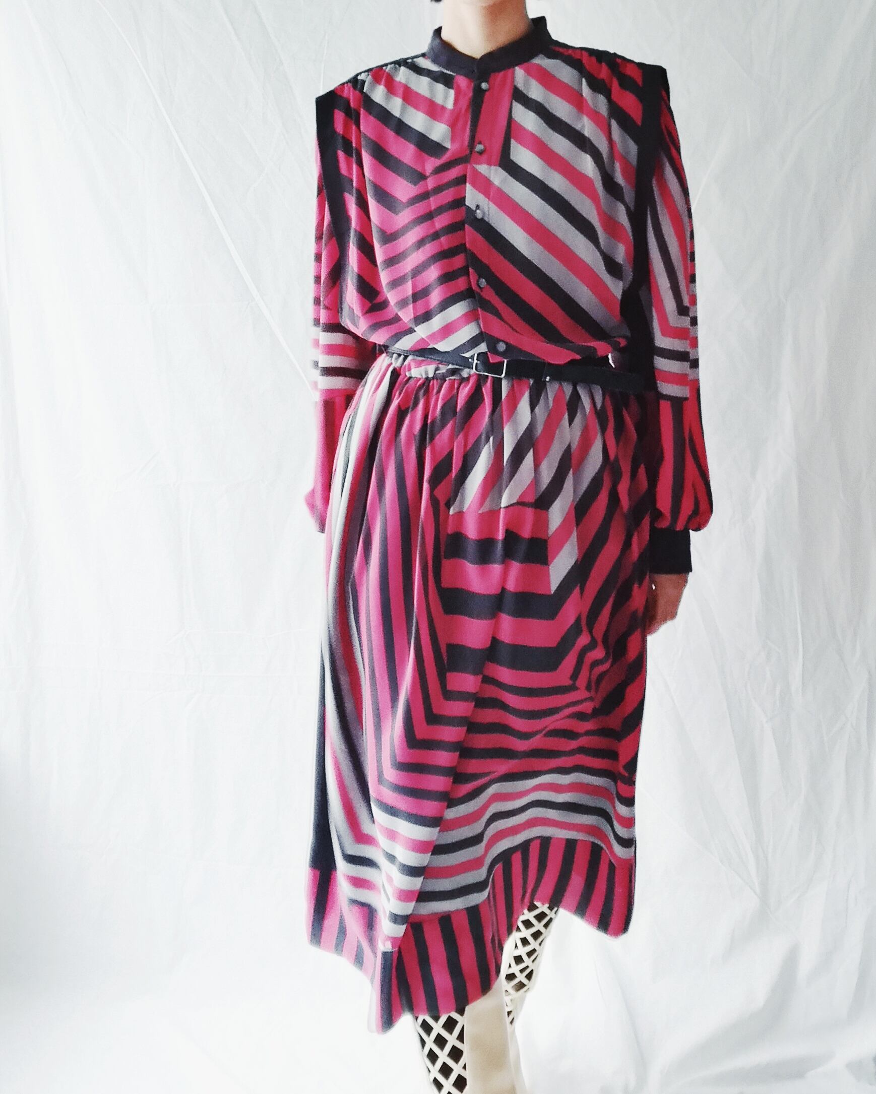 ピンク×グレーの相性が◎寒い季節はニットと重ねて、春先には一枚でもインパクトのあるヴィンテージワンピース。