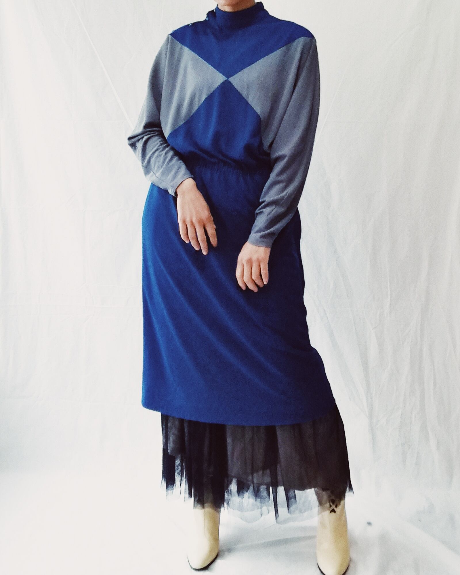 EURO VINTAGE / ITARIAN VINTAGE DOLMAN SLEEVE TWOTONE DRESS.