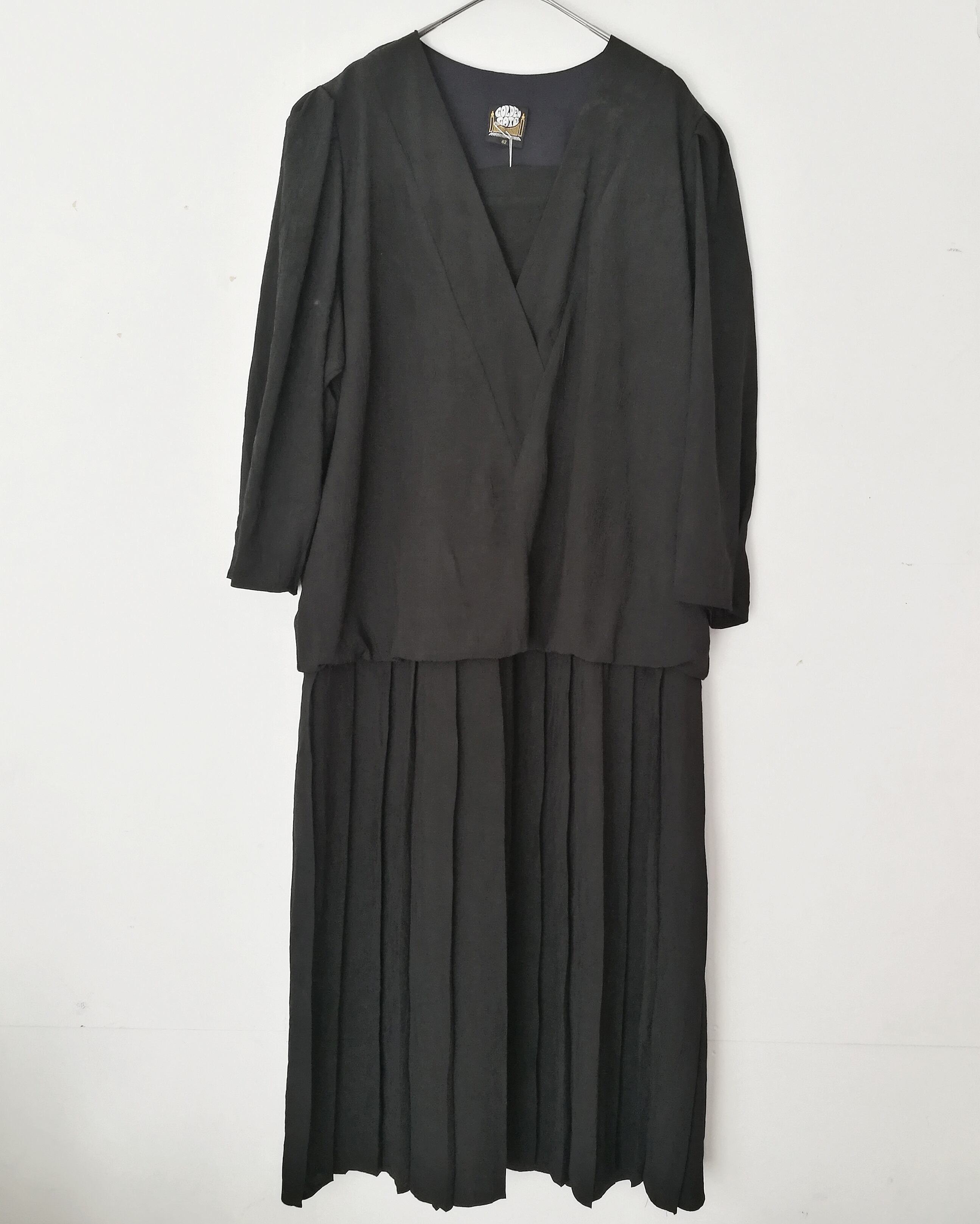EUROPE VINTAGE / DROP WAIST BLACK DRESS.