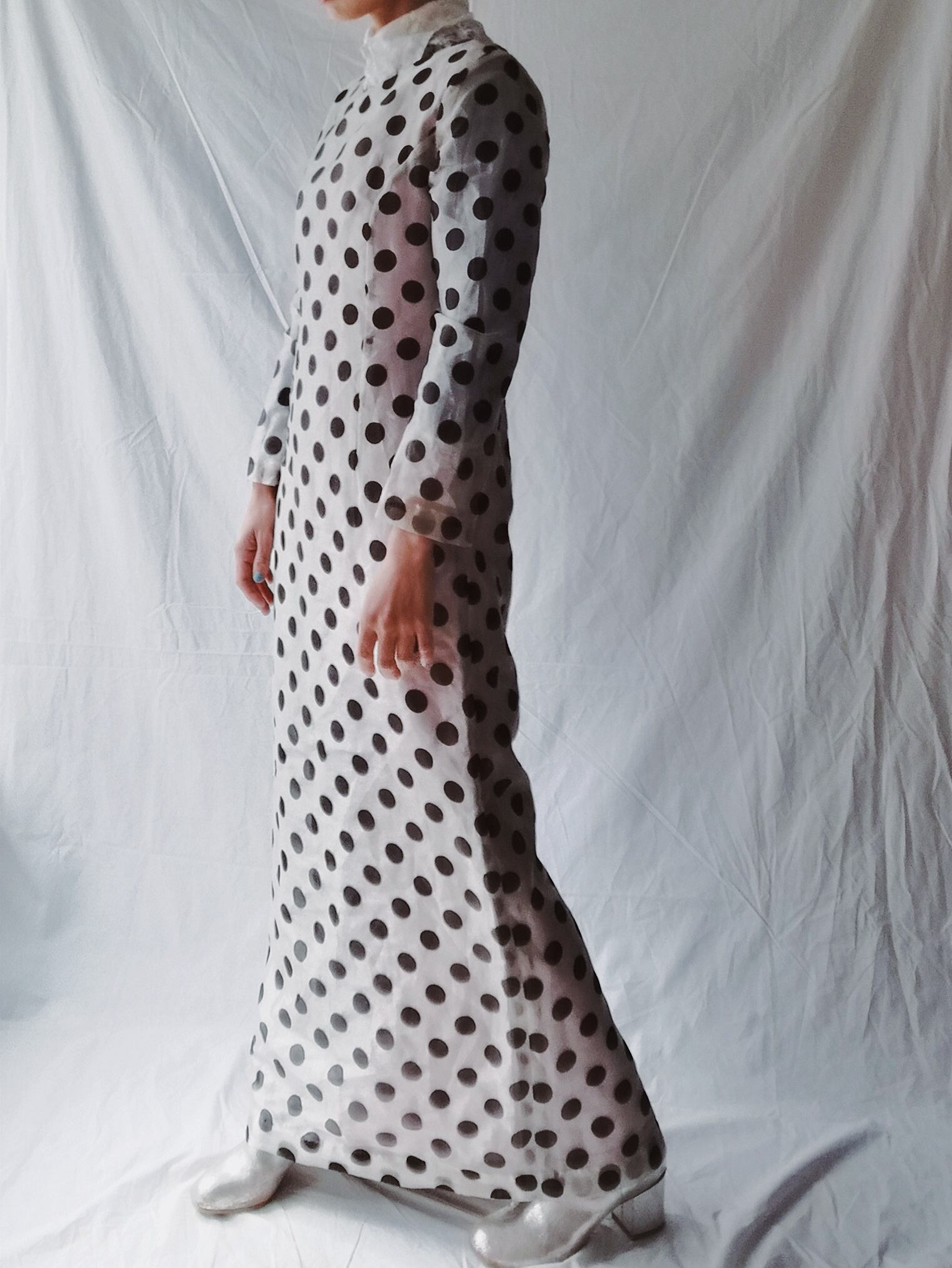 裏地のない腕は透けます。個性的なアイテムでそのままでもインパクトがありますが、アクセサリーやアウターで自分のモノにしていきたい。