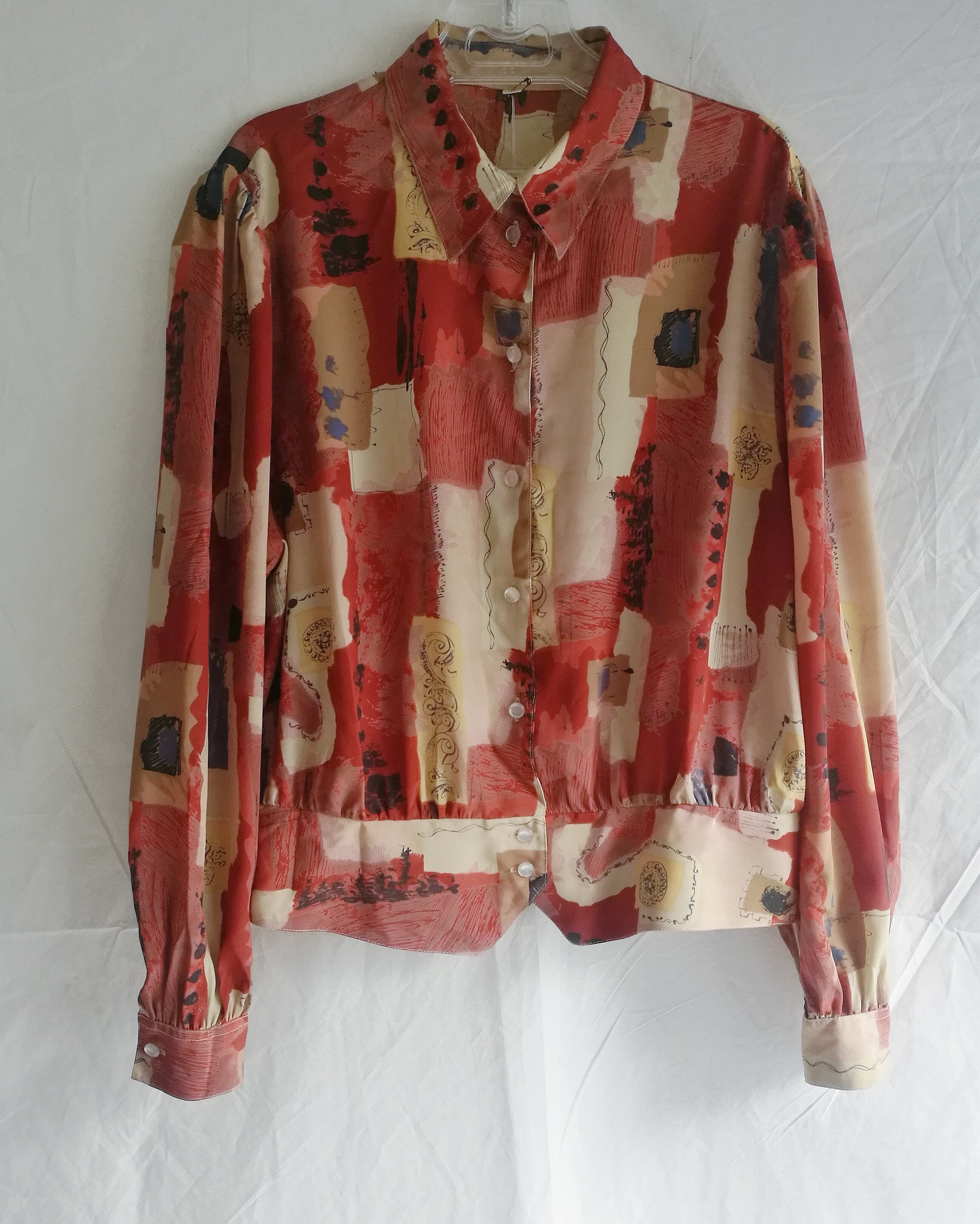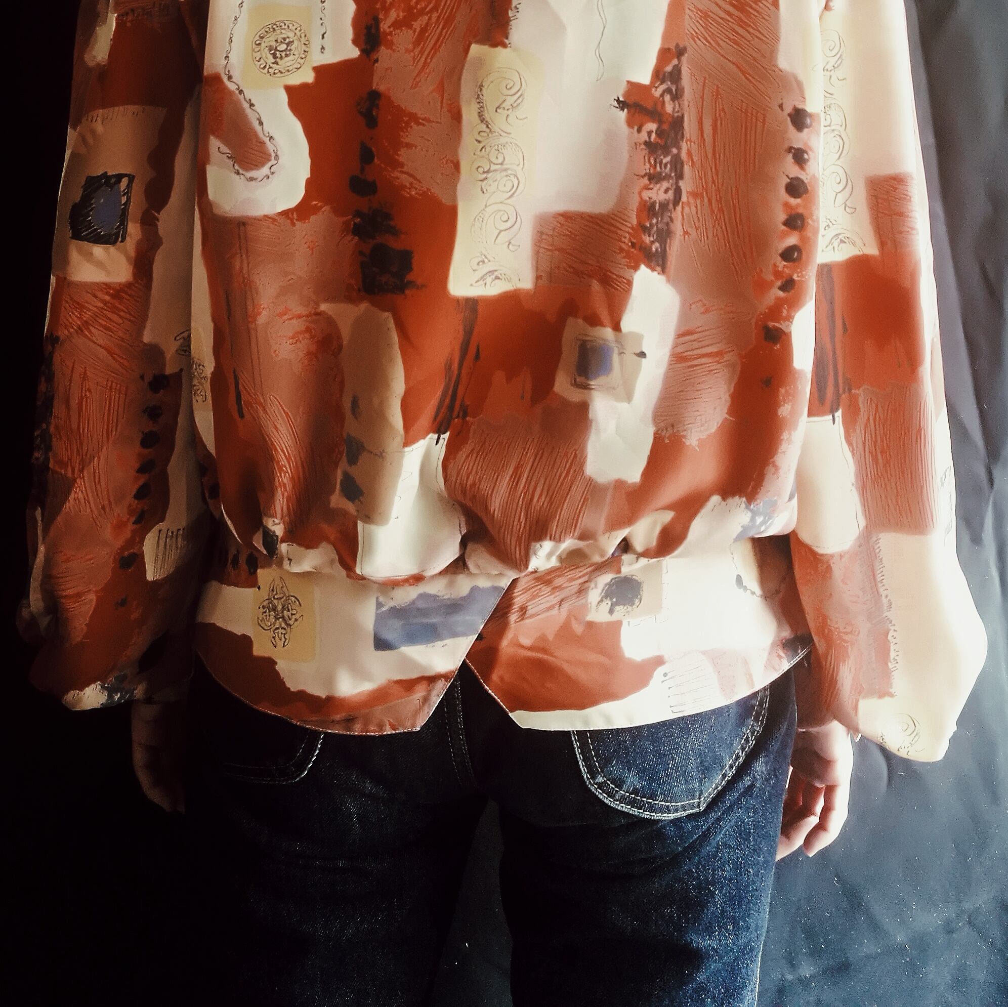 アートな柄がかわいいヨーロッパのヴィンテージブラウス。