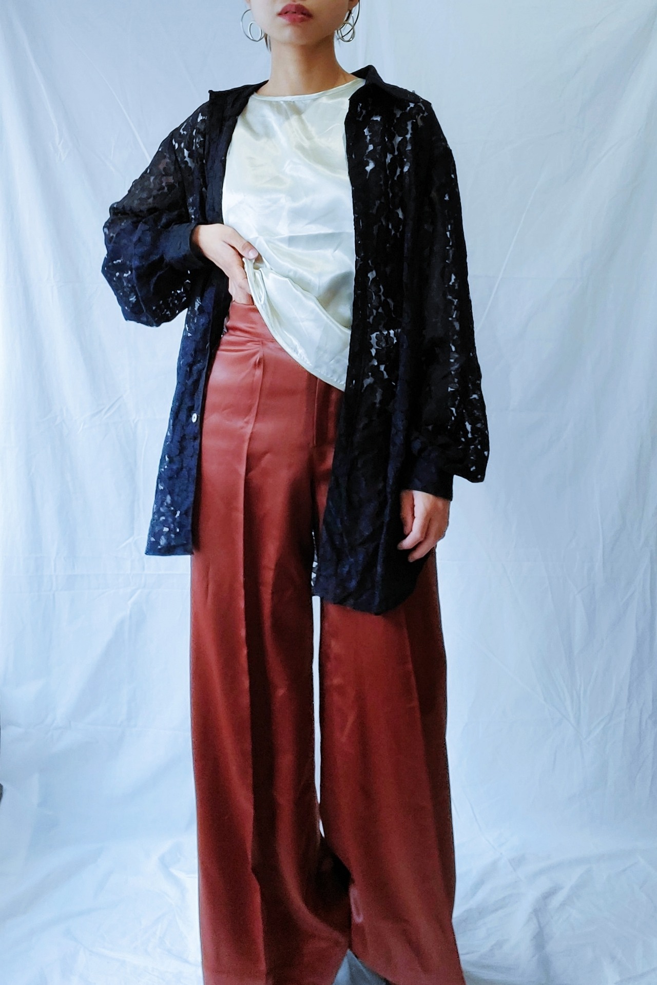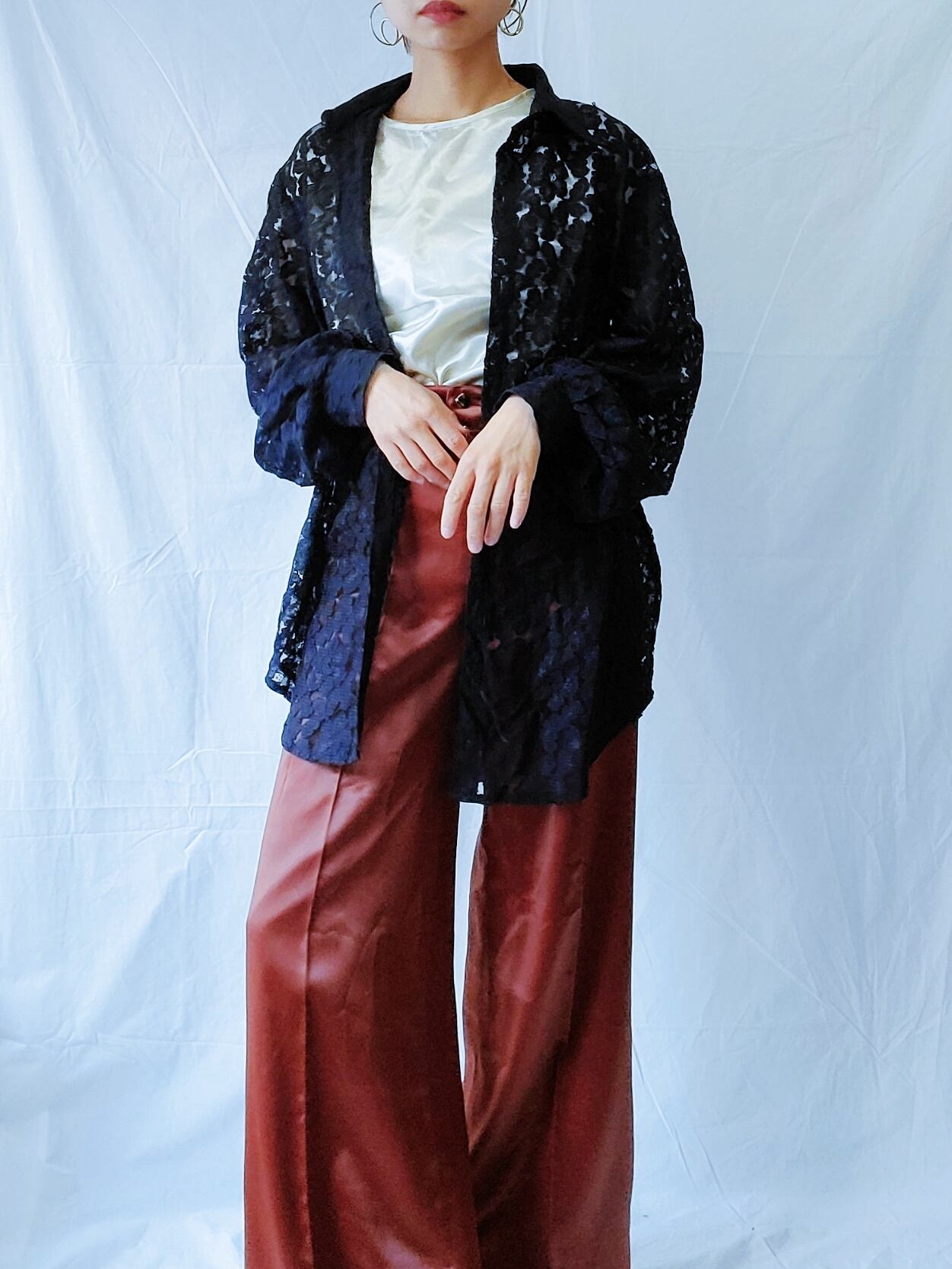 総レースのドレスシャツ。
