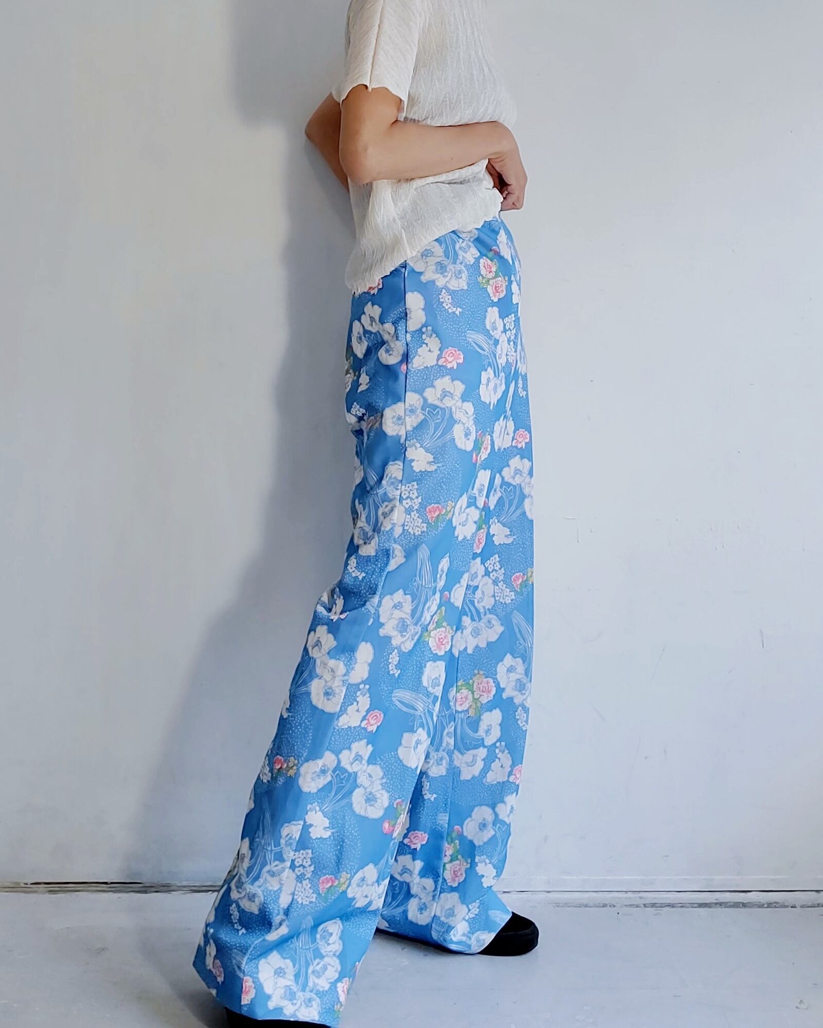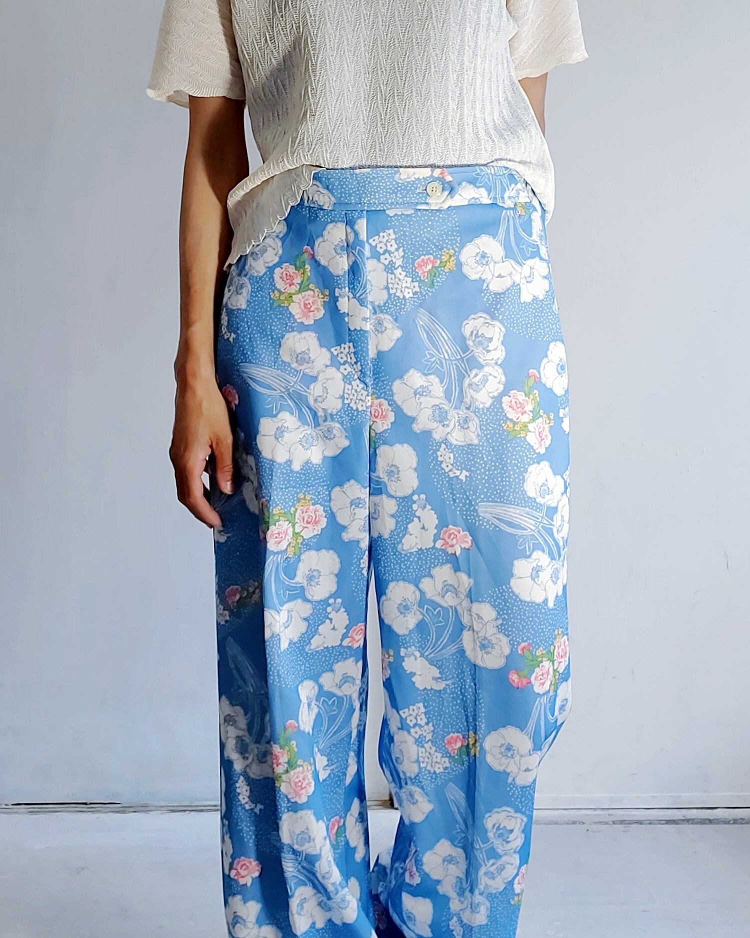 USAヴィンテージ レトロな花柄がかわいい70sポリパンツ。