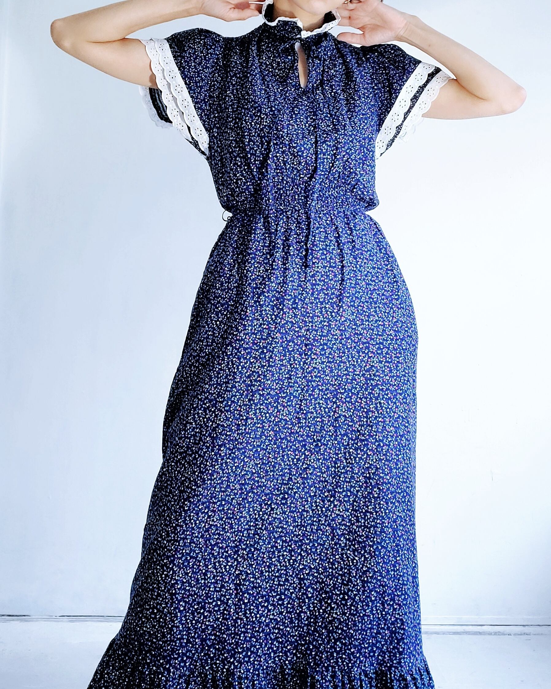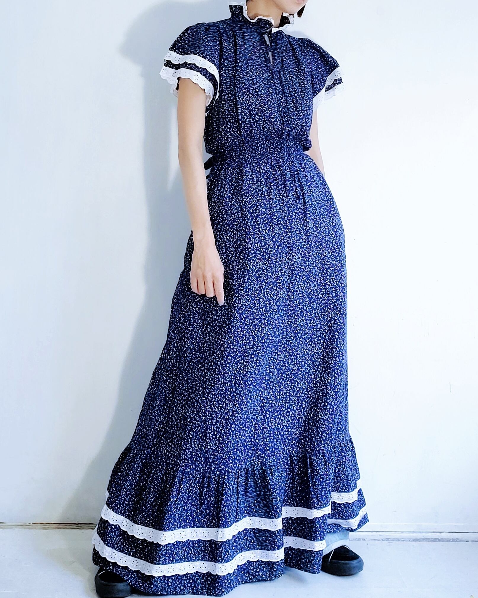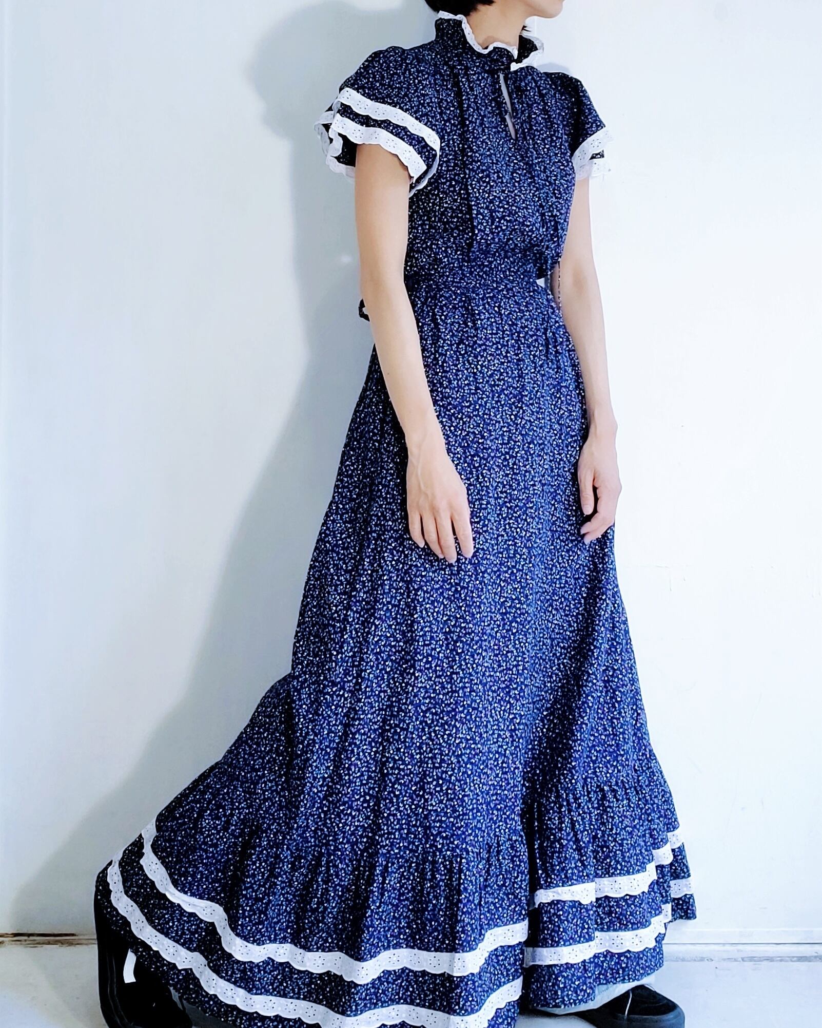 小花柄にフリルが素敵なドイツの70sヴィンテージチロルワンピース。