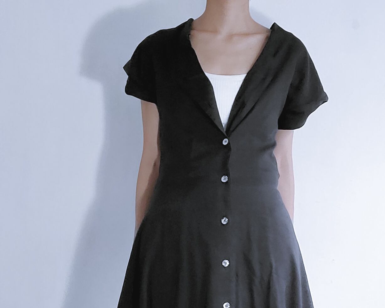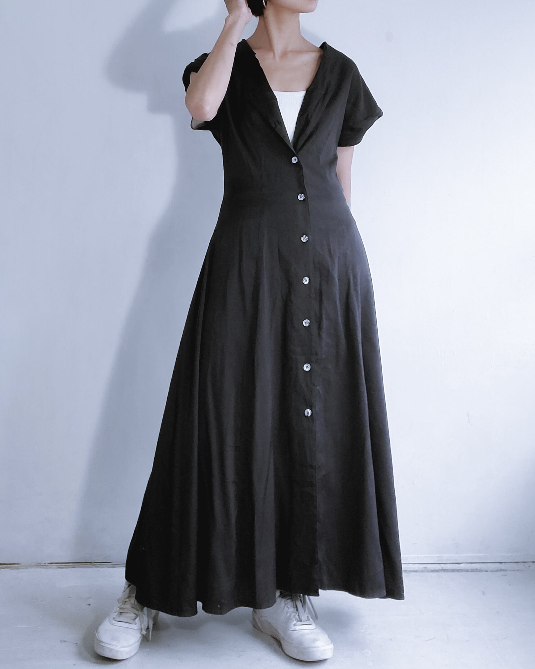 EURO VINTAGE / BUTTON DOWN BLACK DRESS.