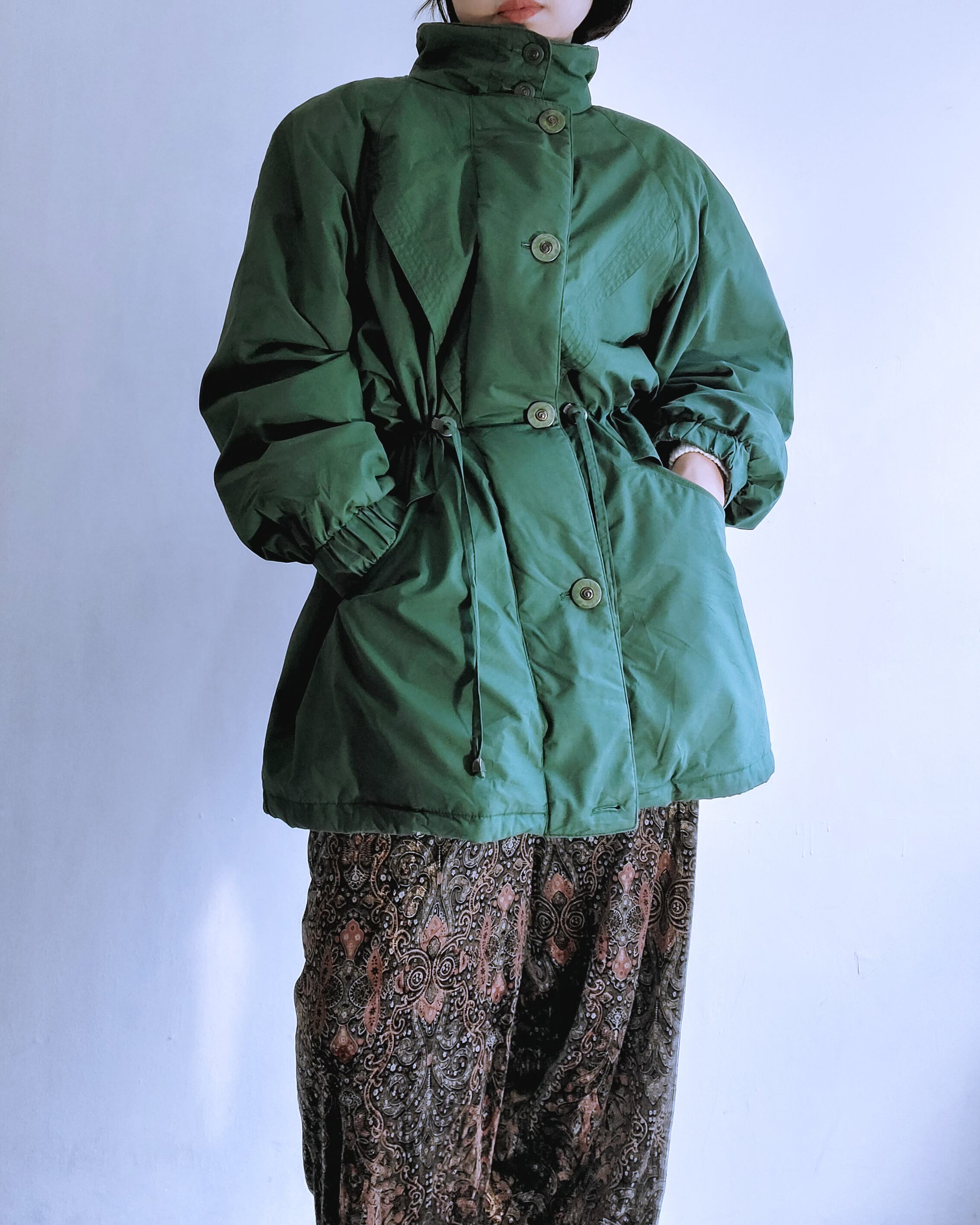 SYMPATEXのレディースアウターです。ウエストドローストリングで絞って着るのもとてもかわいいです。