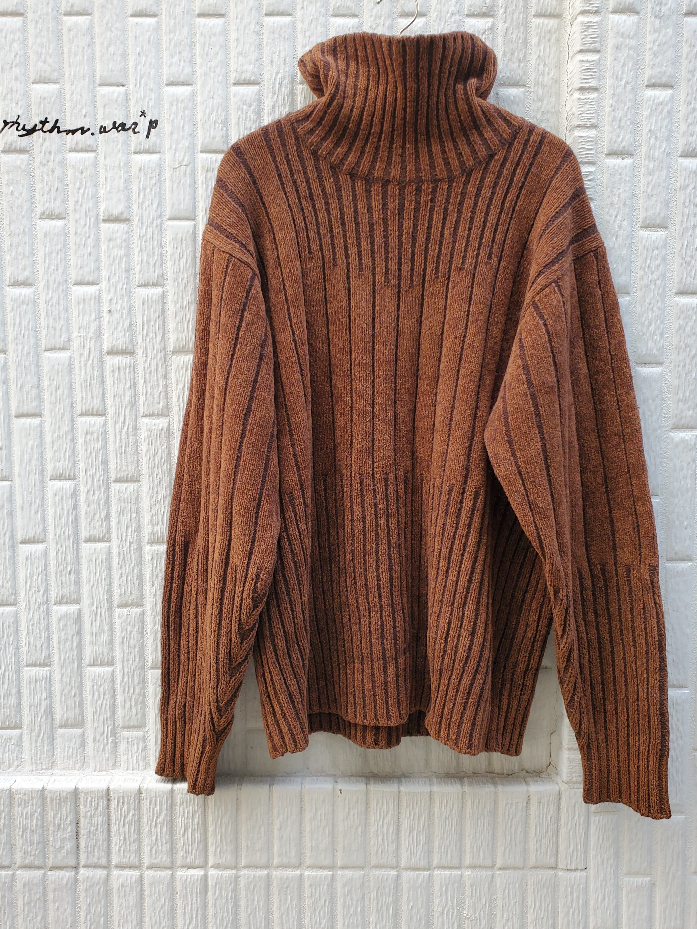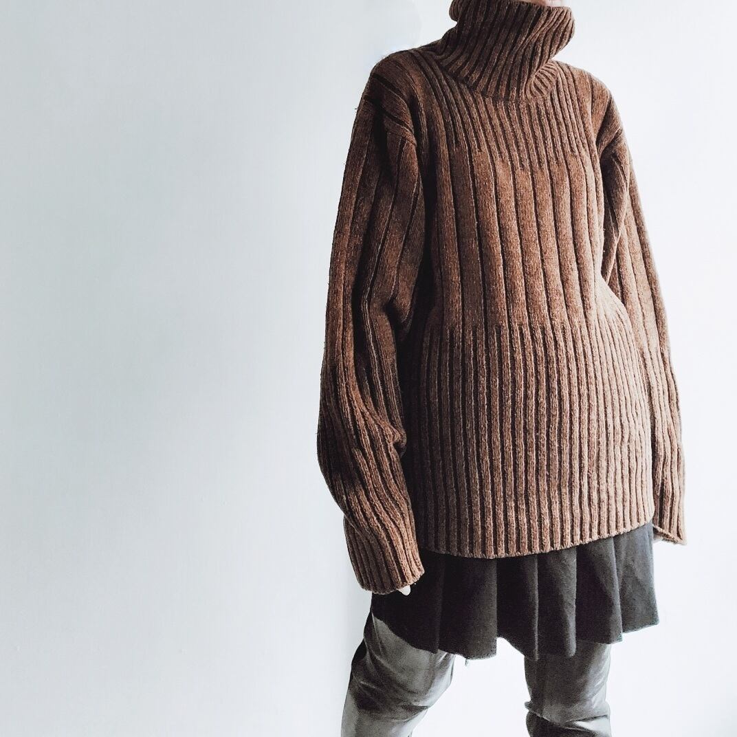 モール糸を使用しているハイネックニットセーターです。