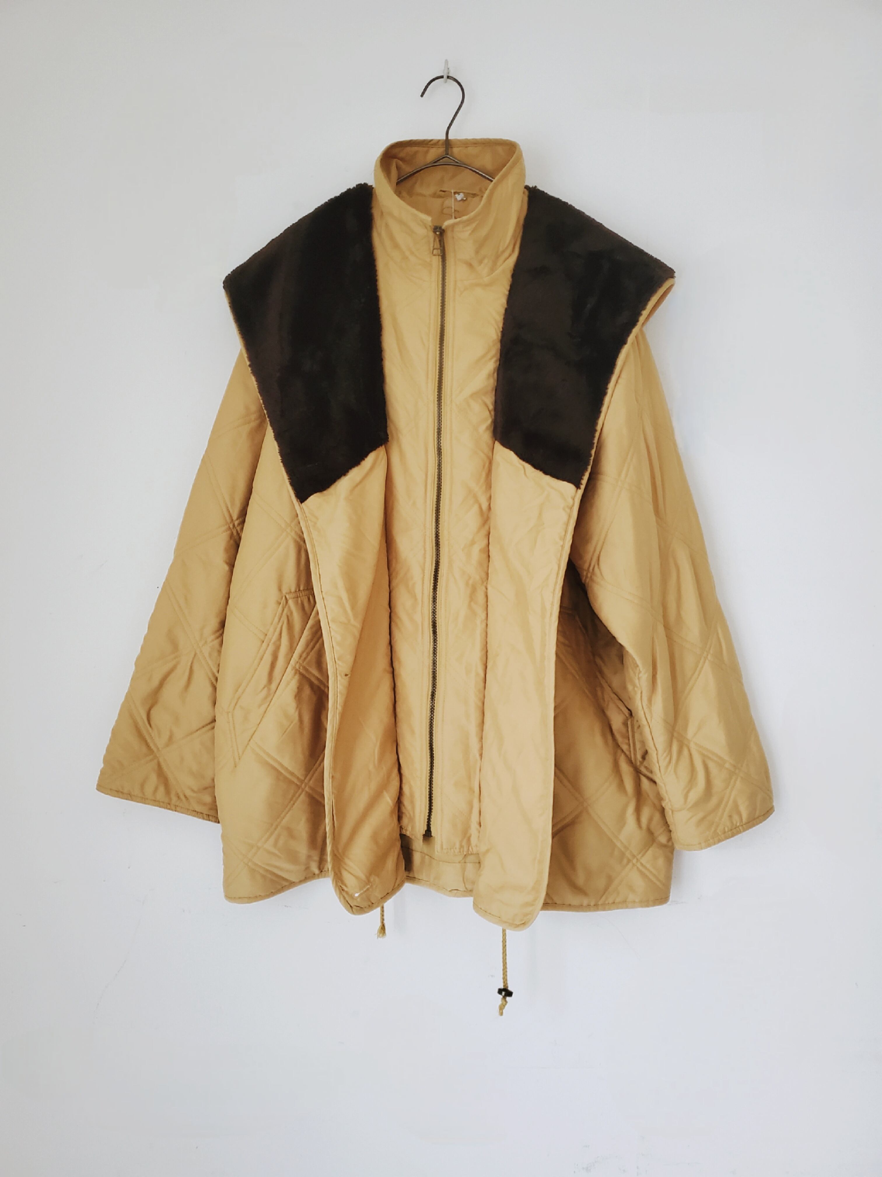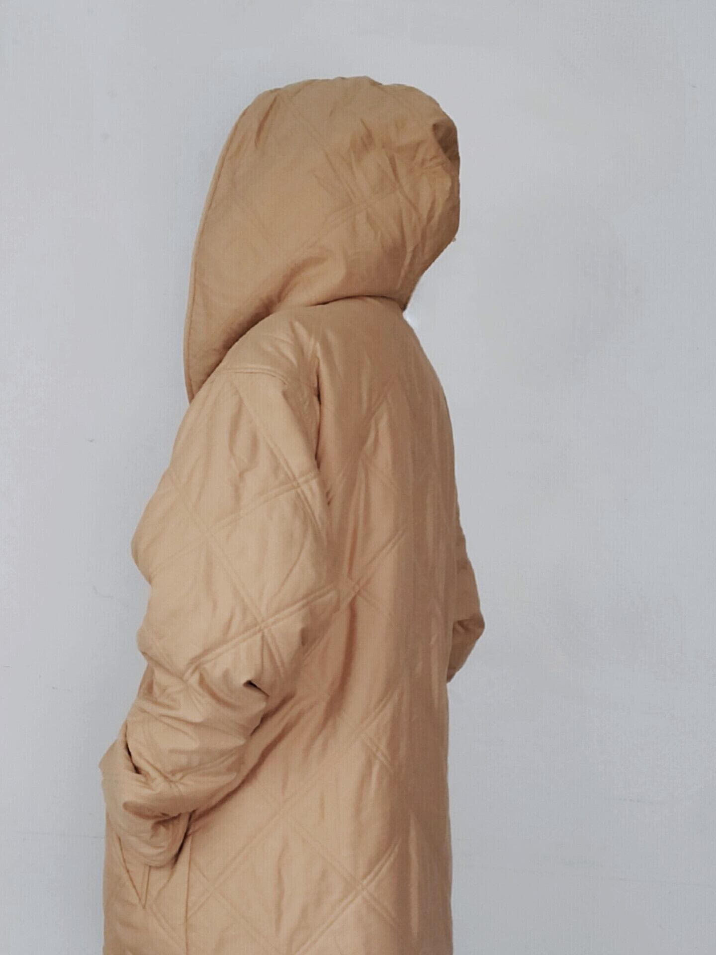フィンランド製のキルティングフーディコートです。フードにはボアが施されており、かぶった時に耳まで温かく包み込まれます。着用感は重すぎず、軽やかでありながらも暖かさをしっかりと感じられるアウターです。イエローとブラウンカラーからはぬくもりを感じられ寒い季節にぴったりのアイテムです。