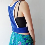 青×白のジャージー素材のスポーティーなクロップドダンクトップ。サイド~背中は大きく開いていてとてもかわいいです。Tシャツに重ねても◎