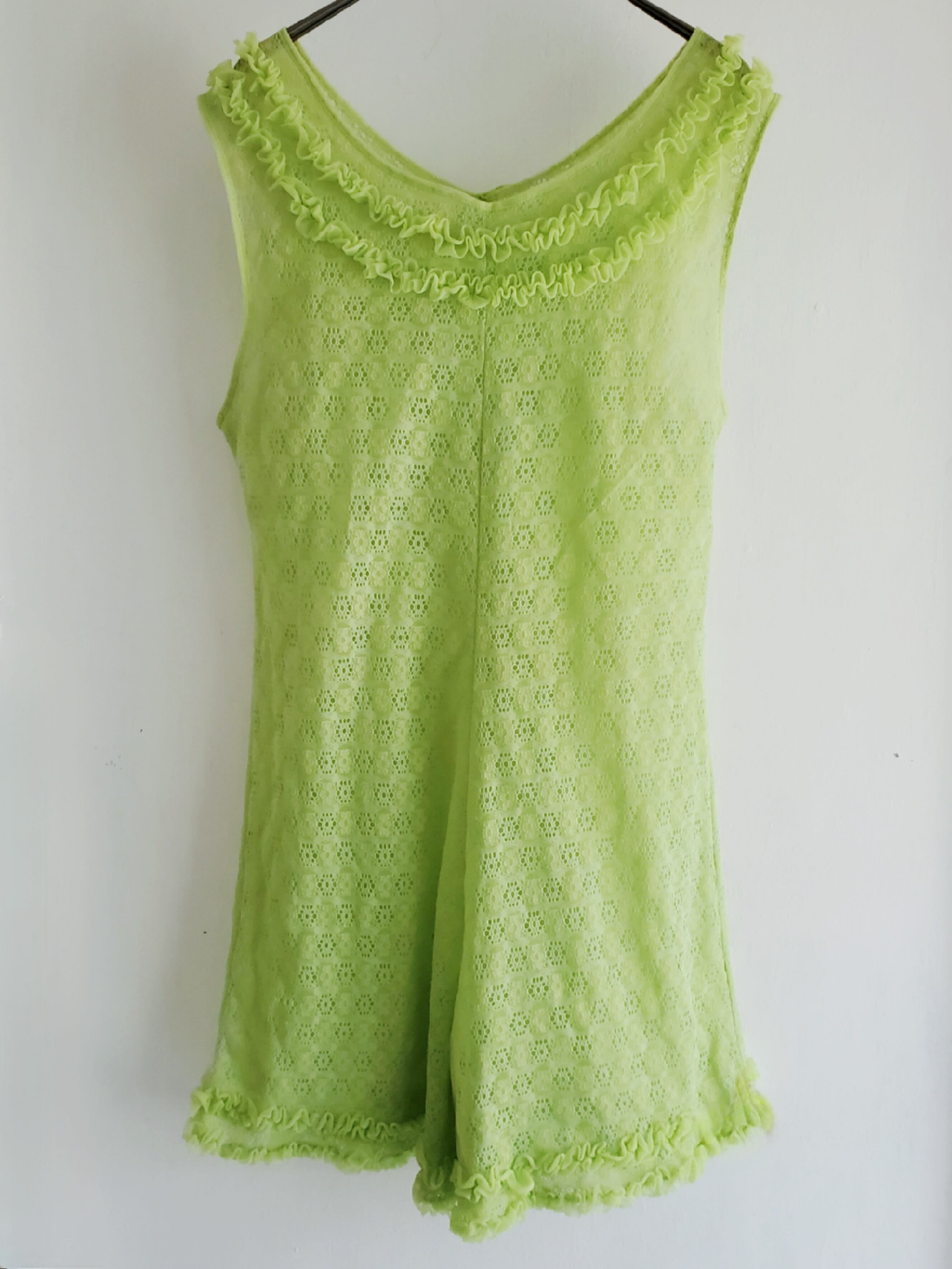 総レースのヴィンテージプレイスーツ。トップはブラトップ、Tシャツ、タンクトップ等、ボトムスはブルマやバイカーショーツをはいてシアー感を楽しみながら着たい。インナー使いも◎