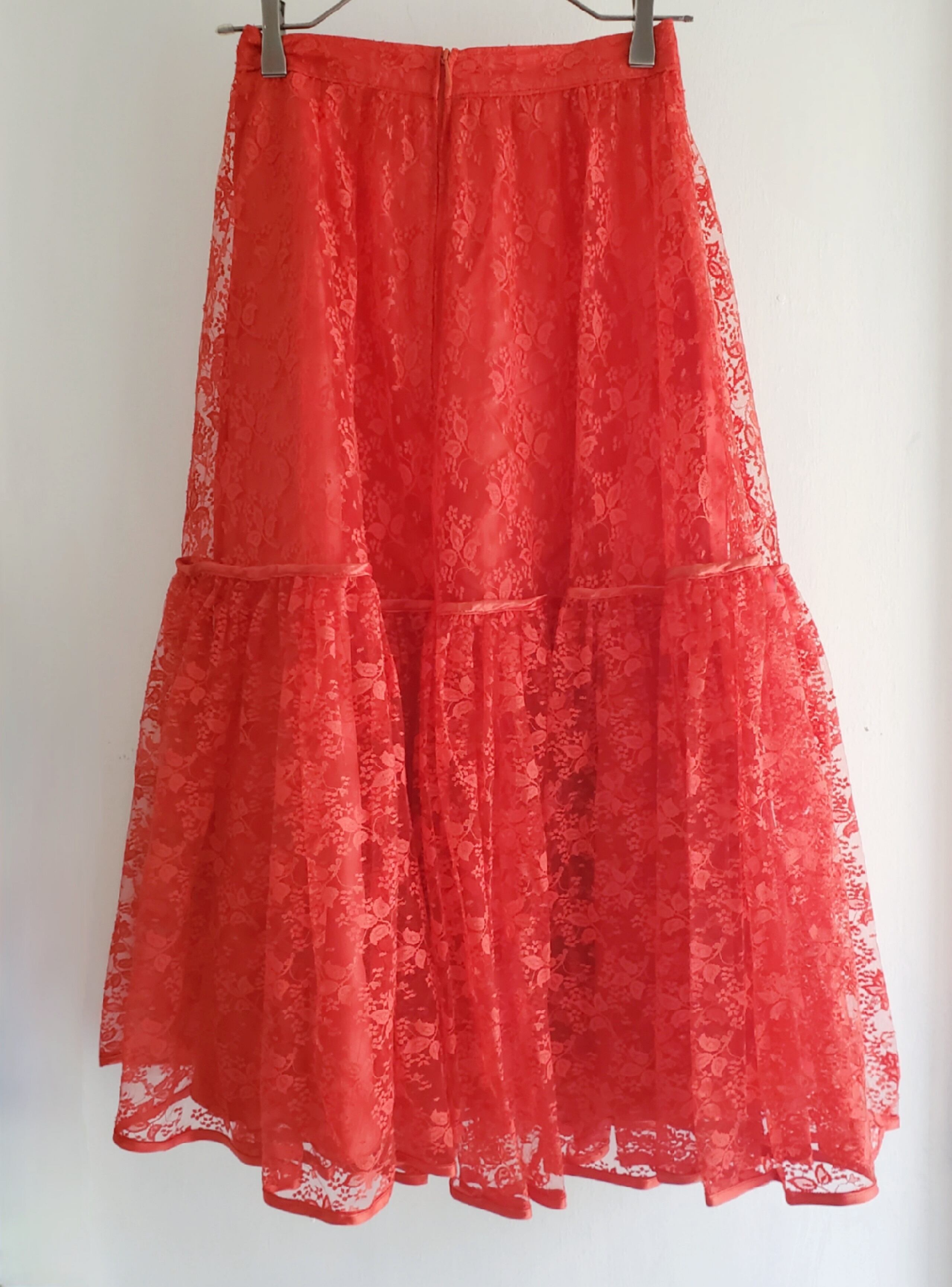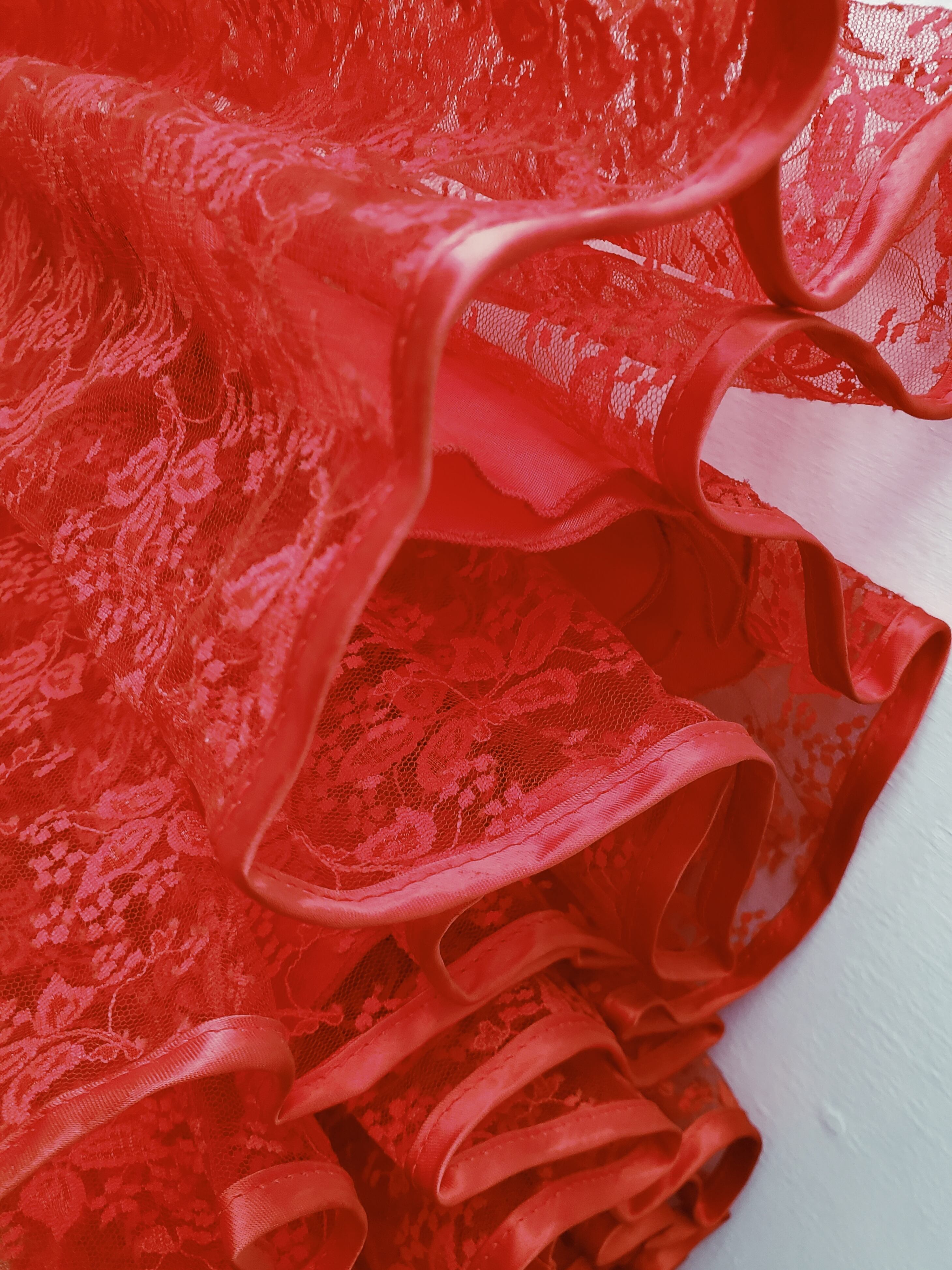 MADE IN GERMANY RED VOLUME LACE SKIRT.