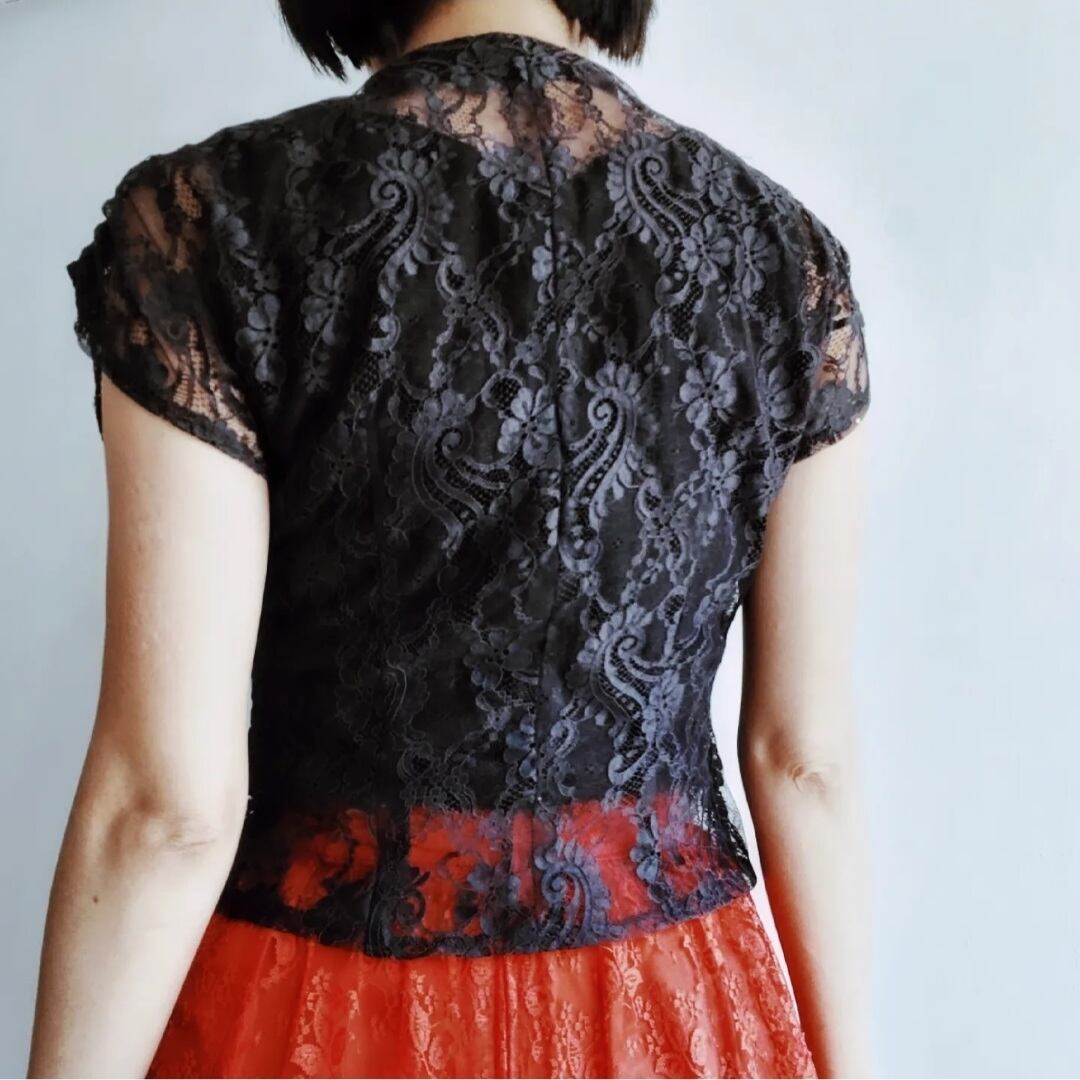 クロップド丈のレーストップ。肩にタックが入り肩にかかる感じが魅力的です。