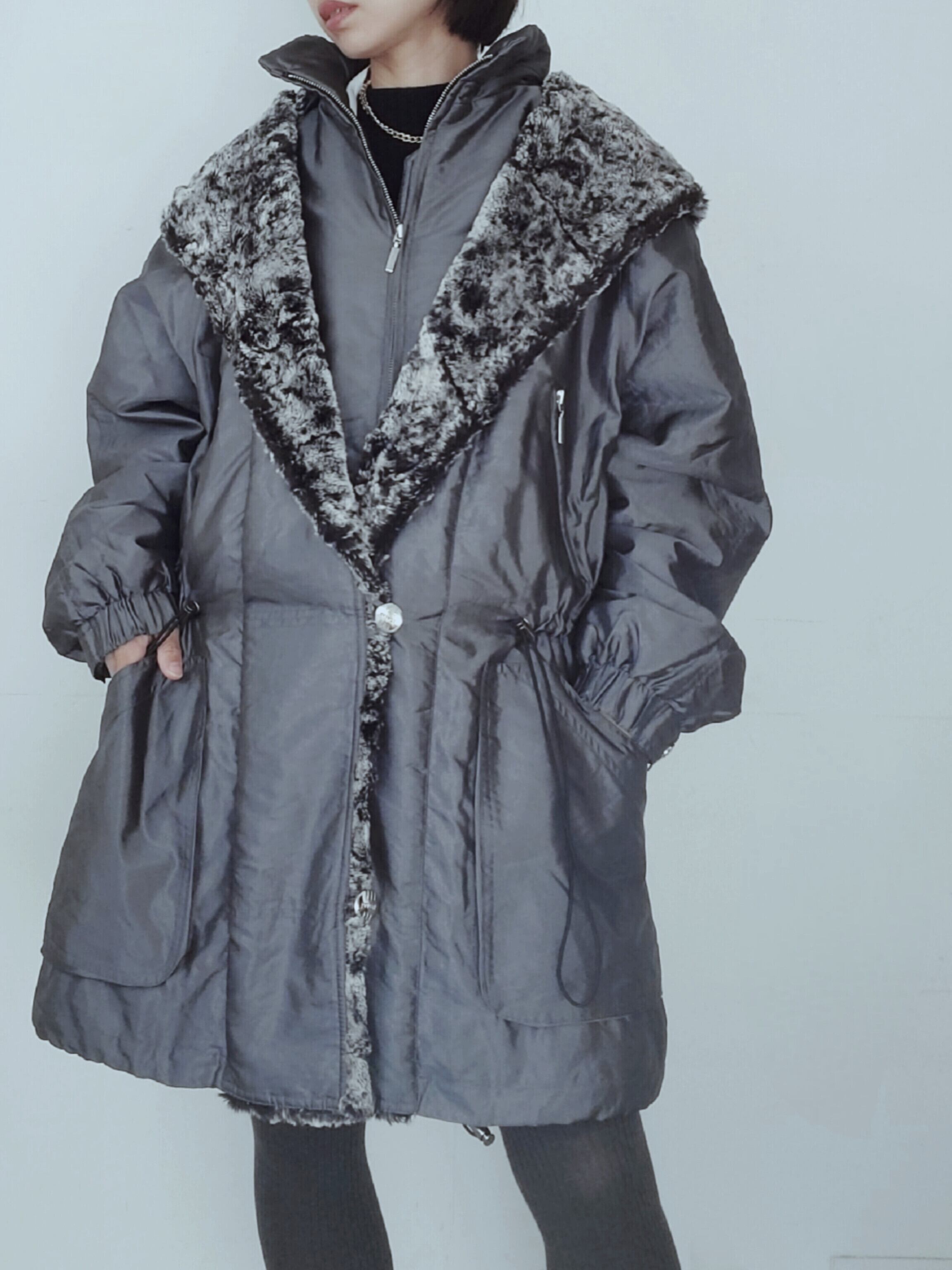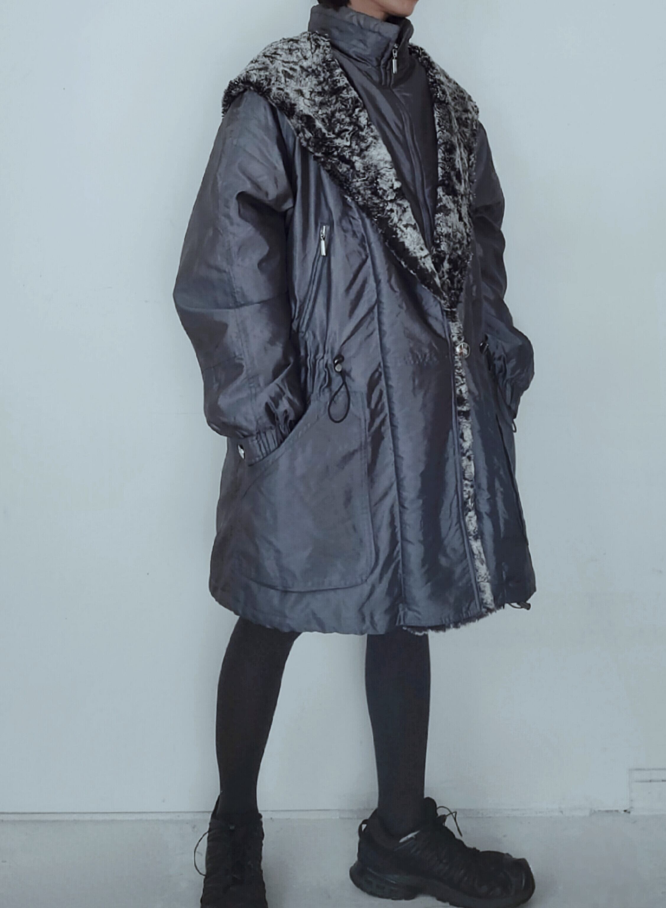 EURO VINTAGE NYLON HOODIE COAT WHIT BOA.