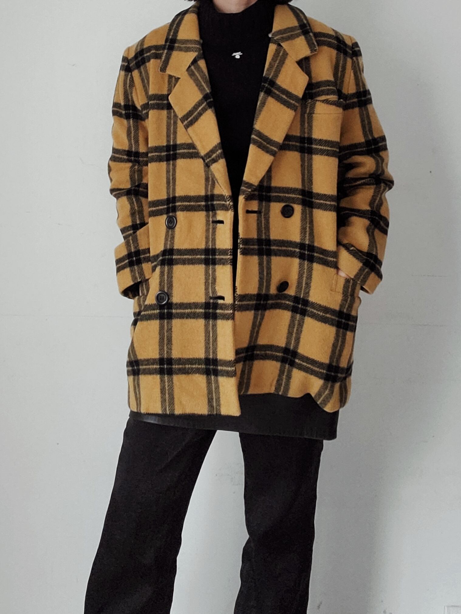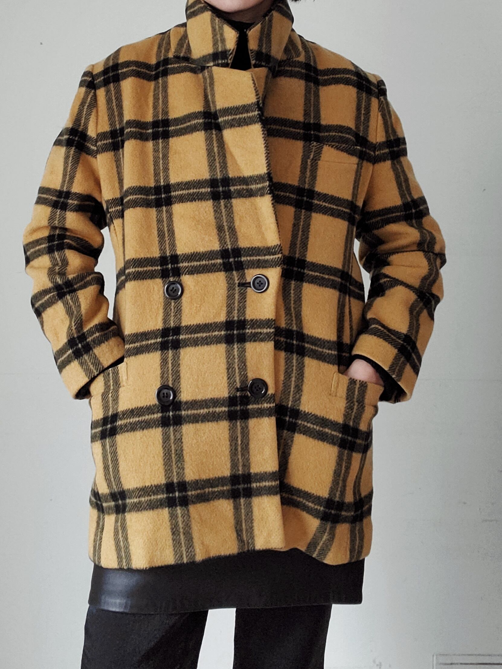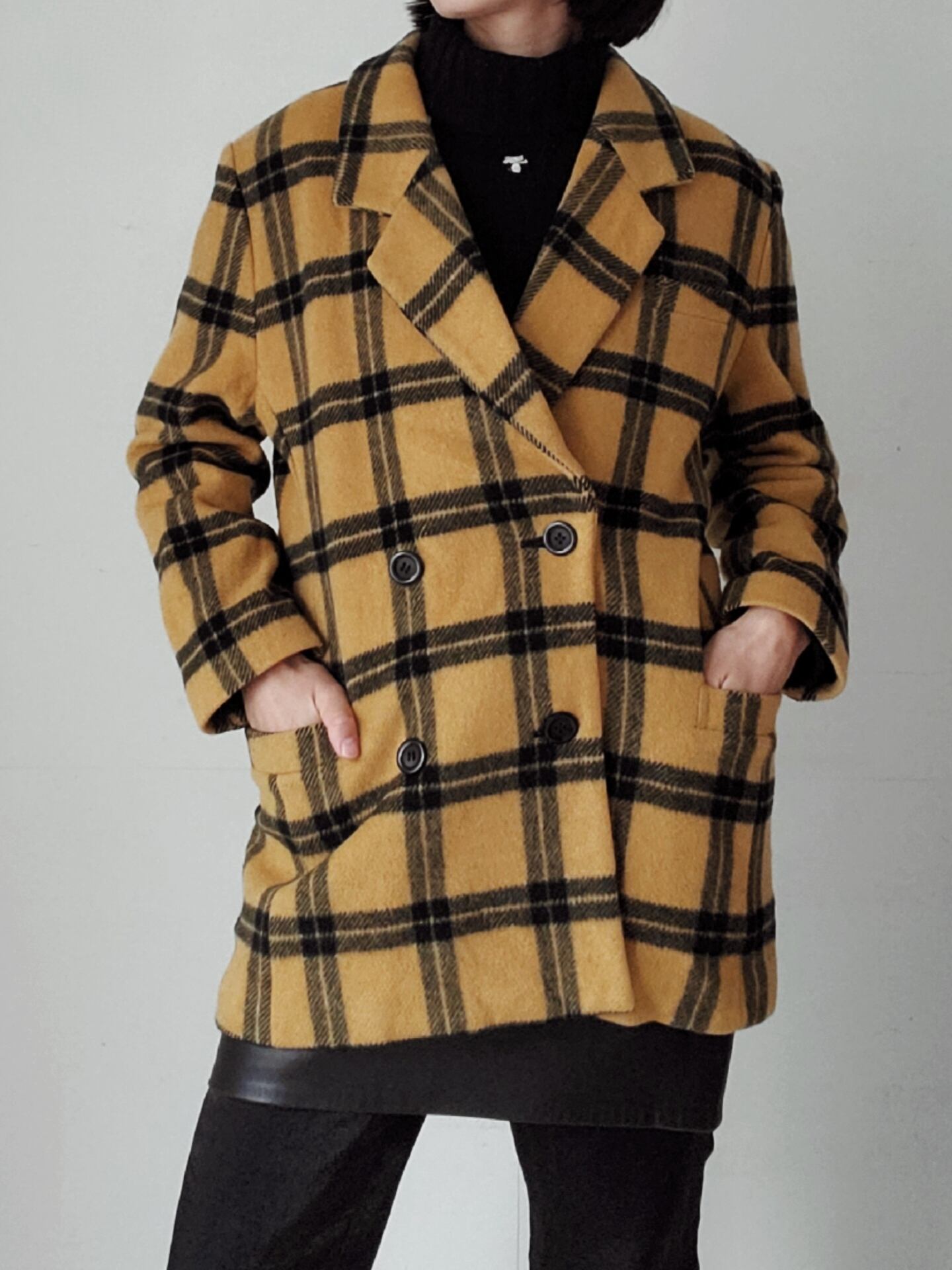 カシミヤ10%配合のダブルブレストチェックウールジャケット。温かく軽い着心地で、上品でクラシックなデザインが魅力です。コンパクトなサイズ感でコーディネートを引き立てるインパクトのあるジャケットです。