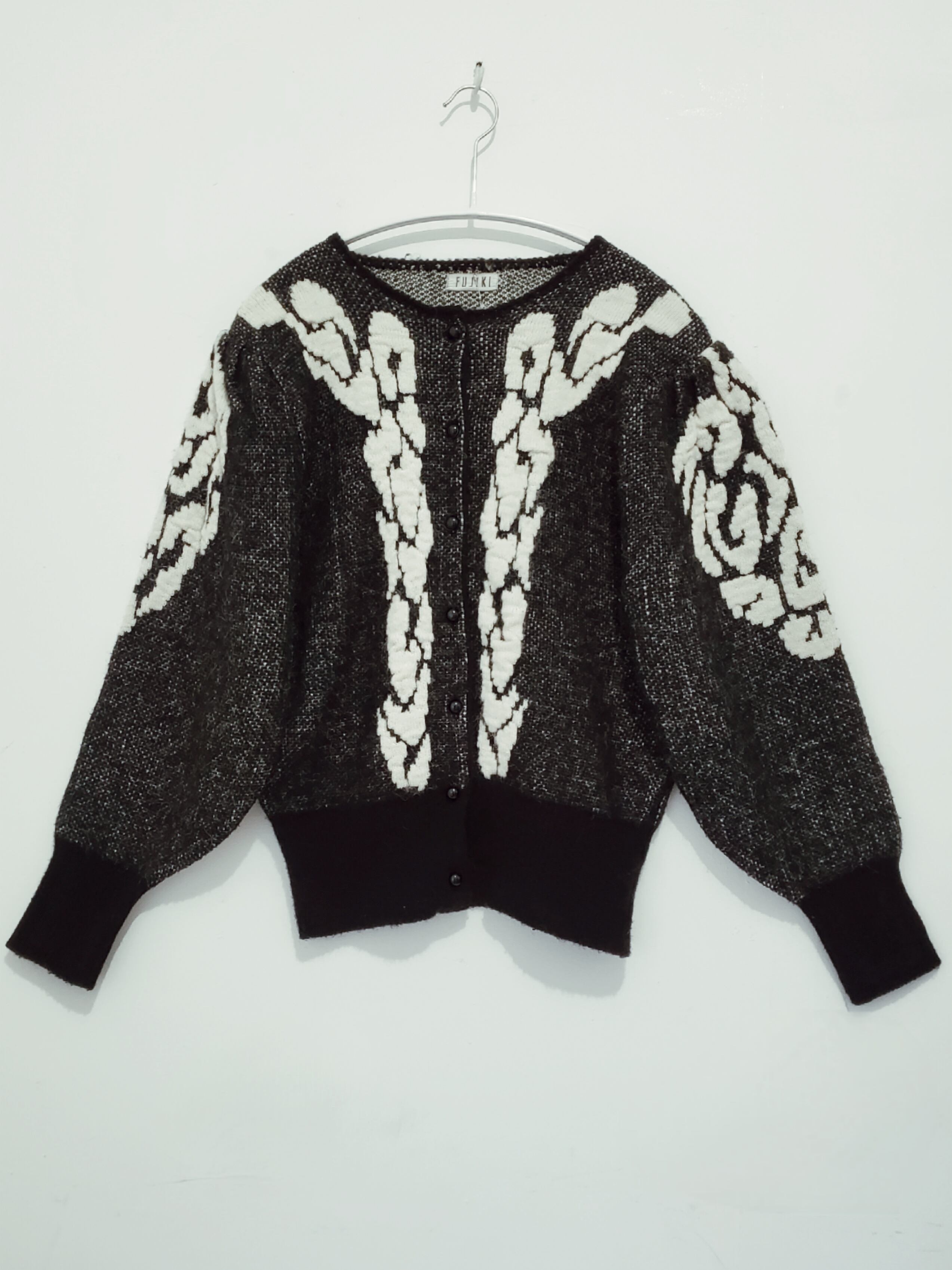 立体感のある編み模様とボリューム袖が魅力のカーディガン。シックなブラックに映えるデザインで、コーデに華を添える一着です。リブ幅が大きめに取られていてボリュームがありながらバランスよく着こなせるアイテムです。